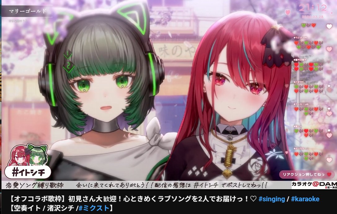 ぽた❣️MIDD💚 @pota_MIDD · 13m 【オフコラボ歌枠】初見さん大歓迎!心ときめくラブソングを2人でお届けっ!♡ #singing / #karaoke 【空奏イト / 渚沢シチ /#ミクスト】 youtube.com/live/7r_DXj_n_… 5