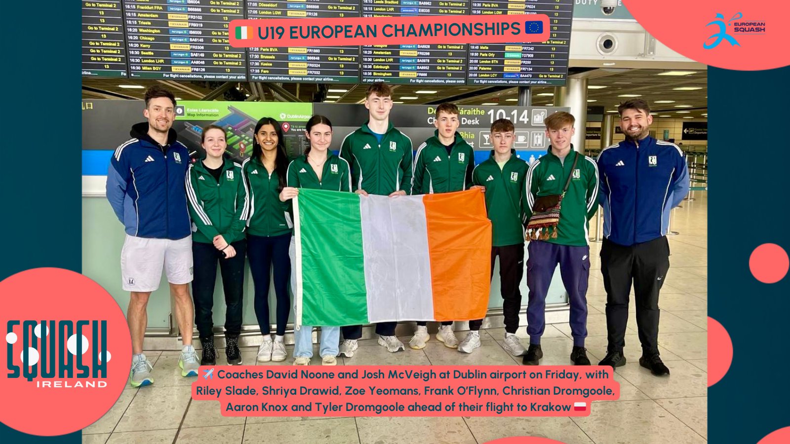 The Dublin 9️⃣ will be joined in Poland for Saturday's opening round in the BU19 and GU19 European Championships Individuals by Ella Erickson and manager Breanne Flynn... 🤝 #squash #squashireland #stepintosquash #irishsport #irelandE