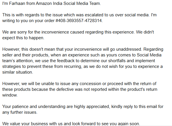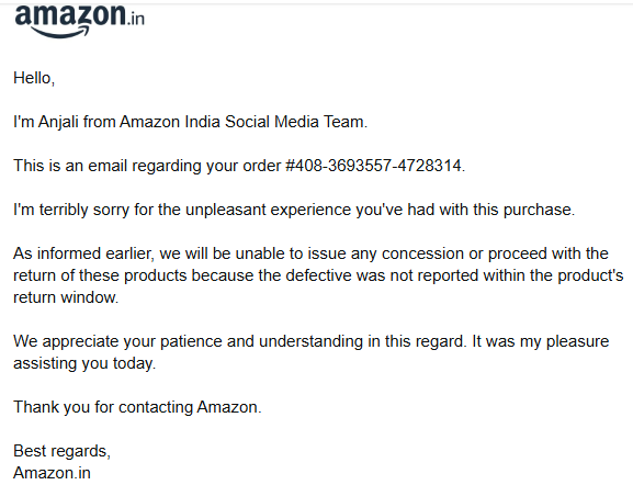 @AmazonHelp this is ridiculous. Why is there no option to return a damaged product. You've been fooling customers. We've paid huge amount. Need this returned asap. #stopusingamazon #amazonindia #amazonhelp #poorcustserv