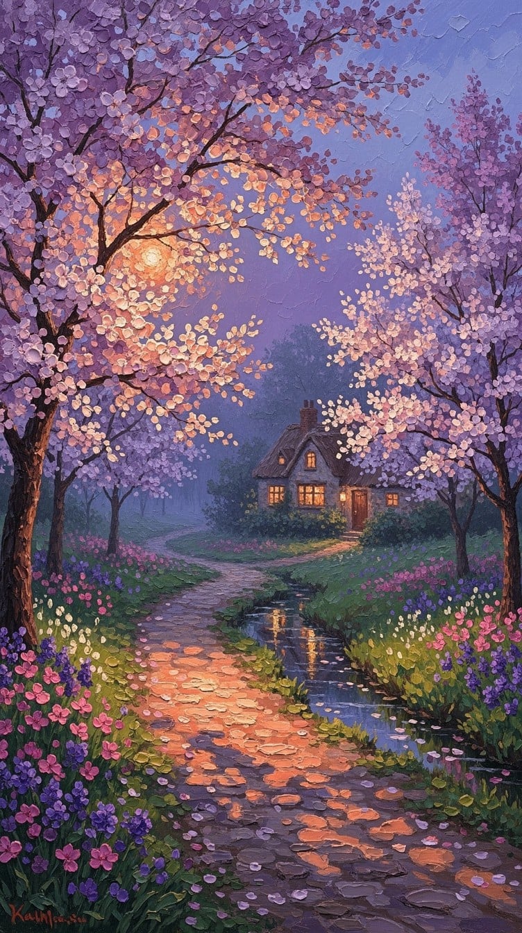 StockCake @stockcake_com · 2h Cherry Blossom #Sunset: A #spring evening #garden #path winds beneath flowering #cherry trees toward a distant #cottage, bathed in warm sunset light and twilight colors. #aiart #aiphoto #stockcake ⬇️ Download and 📝 Prompt �stockcake.com/i/cherry-bloss…mty 7