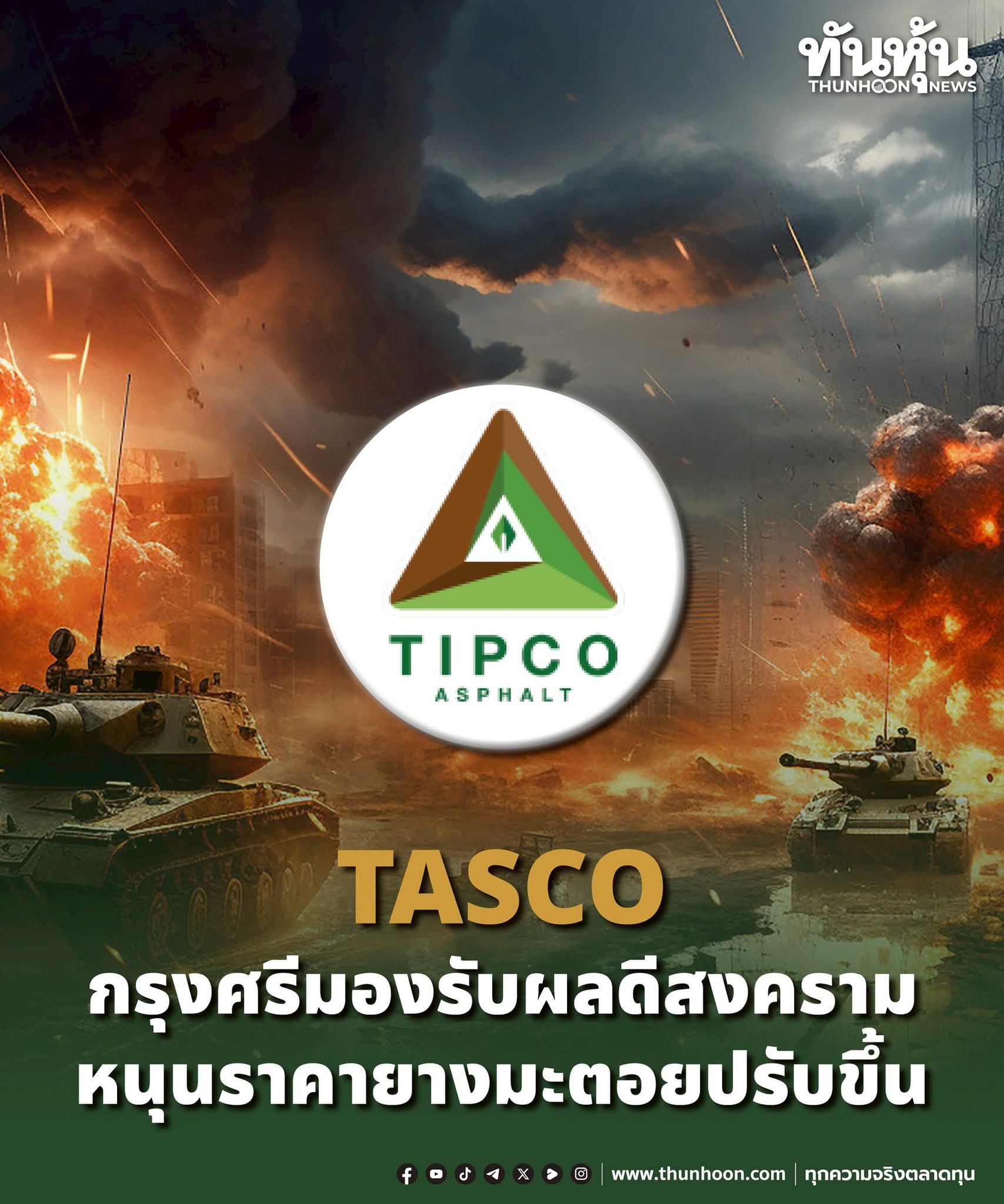 TASCO กรุงศรีมองรับผลดีสงคราม หนุนราคายางมะตอยปรับขึ้น อ่านรายละเอียด คลิก thunhoon.com/tasco-kss-war-…