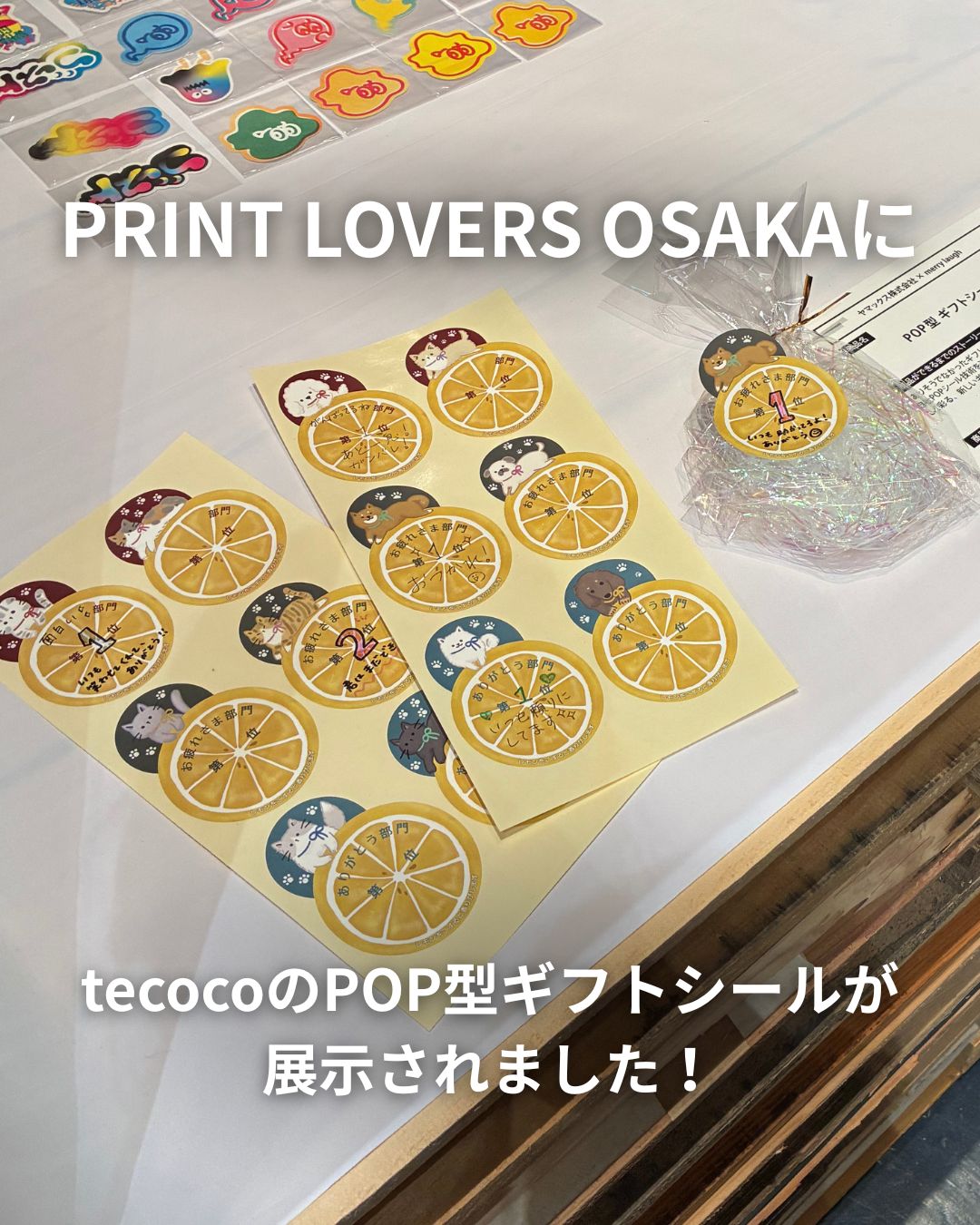 tecoco @tecoco_official · Oct 17, 2025 #PRINTLOVERSOSAKA に #tecoco のPOP型ギフトシールが展示されました🍋 10/18(土)までの開催ですので土曜日のご予定にいかがですか?n 1 122