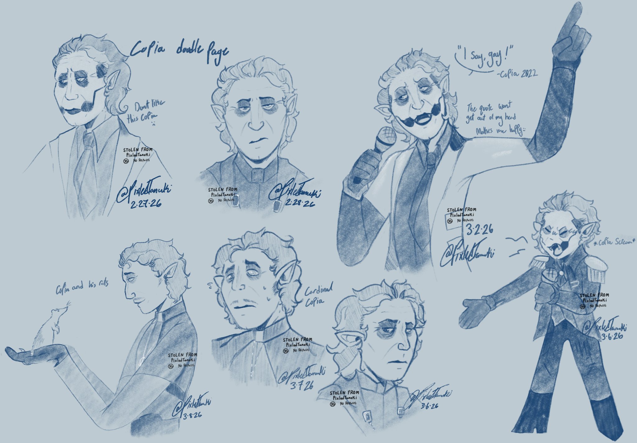 Quick doodle from the other day of Grimm introducing the priest from Satanized mv to Perpetua. (Sorry for the terrible lighting)
