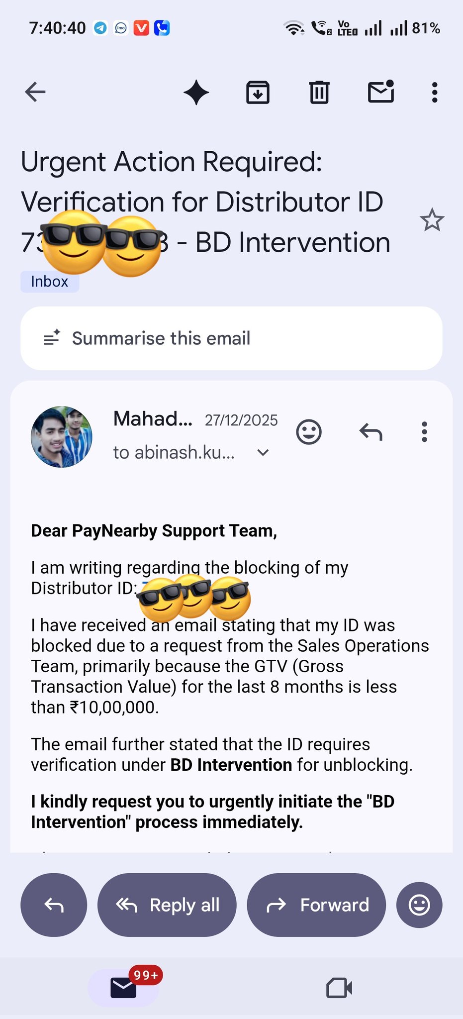 RM ko mail karne ke baad bhi meri ID block hai. @PayNearby ki service puri tarah se bekar aur ghatiya hai. Business ka nuksan ho raha hai aur koi sunne wala nahi! 🚫😤 ​SUDHAR JAO YA APNI SERVICE BAND KARO! 🗑@️ ​@Anand_Bajaj #PayNearby #ThirdClassService #BusinessLok8M