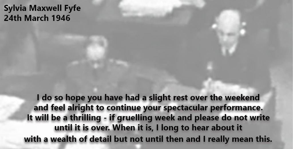 "I am so thankful you have got one of my letters. I have a horrible feeling you are not awfully well. How I long to look after you." #thisweek 80 years ago Sylvia Maxwell Fyfe shows frustration at the erratic post & long separation from husband David whilst he was in Nuremberg.