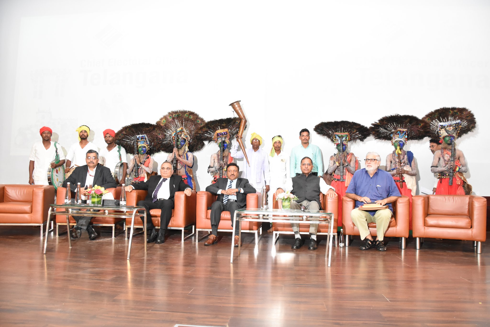 Day 3 - Hon'ble CEC Shri. Rajiv Kumar along with Hon'ble ECs Shri Anup Chandra Pandey & Shri Arun Goel appreciated the skills of members of #Thoti tribe and #Gussadi dance, and another dance performance by members of #Kondareddy tribe.