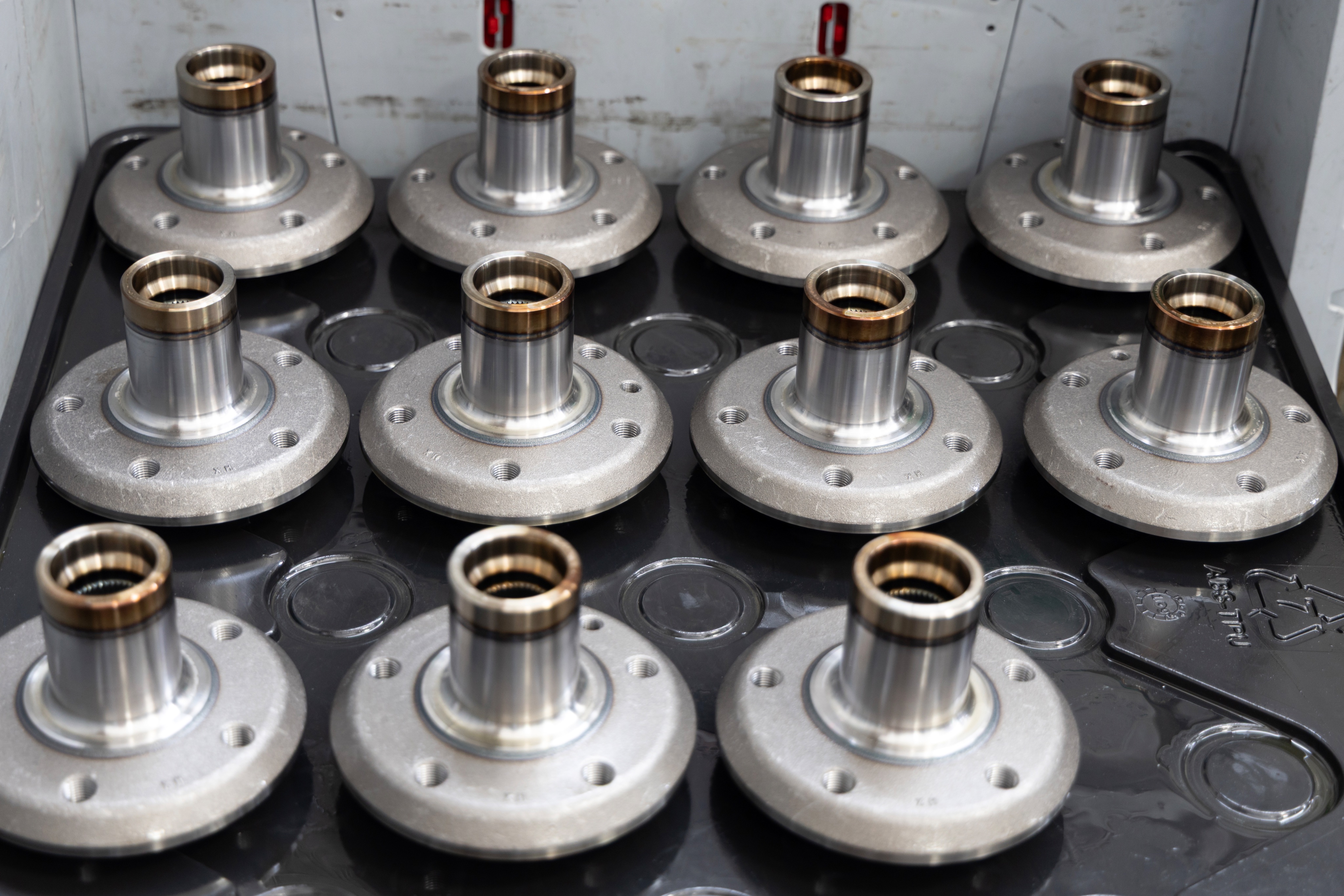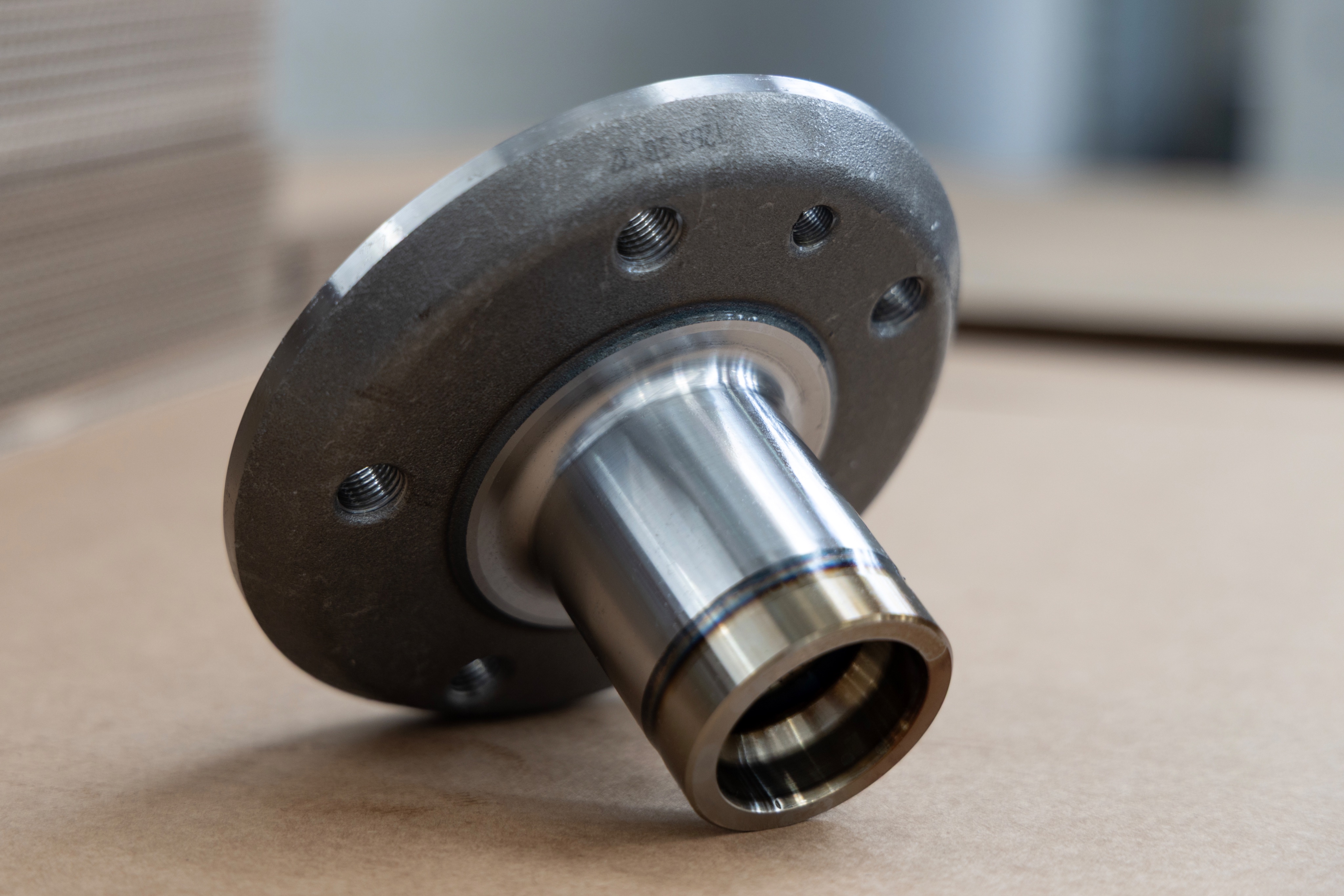Wheel hubs made of C56 carbon steel. Each part includes five M14×1.5 through‑holes with a depth of 16 mm.