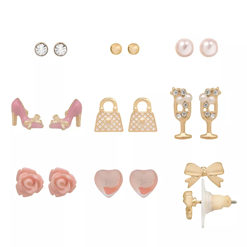LC Lauren Conrad Gold Tone 9-Pair Girly Icons Earring Set at $7.48