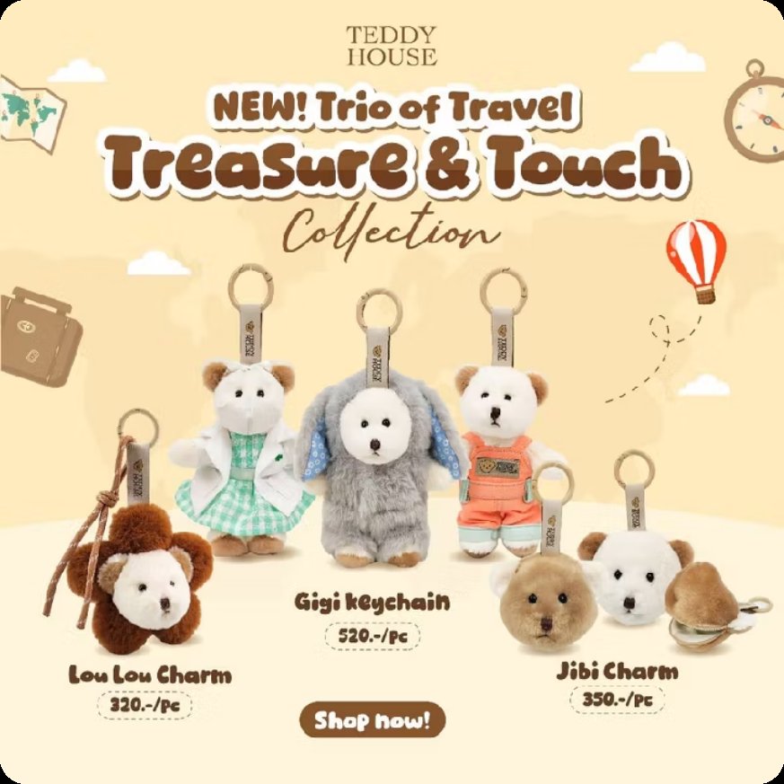 #Teddy House : NEW Trio of Travel, #Treasure & #Touch Collection #พวงกุญแจสุดน่ารัก #พวงกุญแจห้อย ในราคา ฿320 - ฿700 ที่ Shopee s.shopee.co.th/1LbOfosDGS