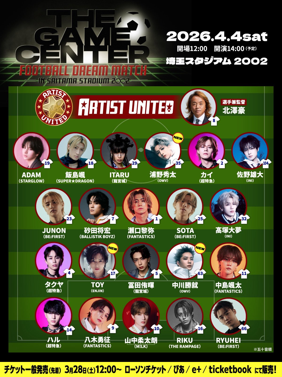 ENJIN【official】 @official_enjin · 1d 【#ENJIN_TOY 出演情報⚽️】 THE GAME CENTER -FOOTBALL DREAM MATCH- in Saitama Stadium 2〇〇2 #ENJIN より #TOY の出演が決定❕ 🗓️ 4月4日(土) 📍 埼玉スタジアム2OO2 一般発売は3/28(土)12:00〜先着💫 お楽しみに@✨ @THEGAMECENTER_ #ゲーセンサッ4gp 2 90 405 69.7K