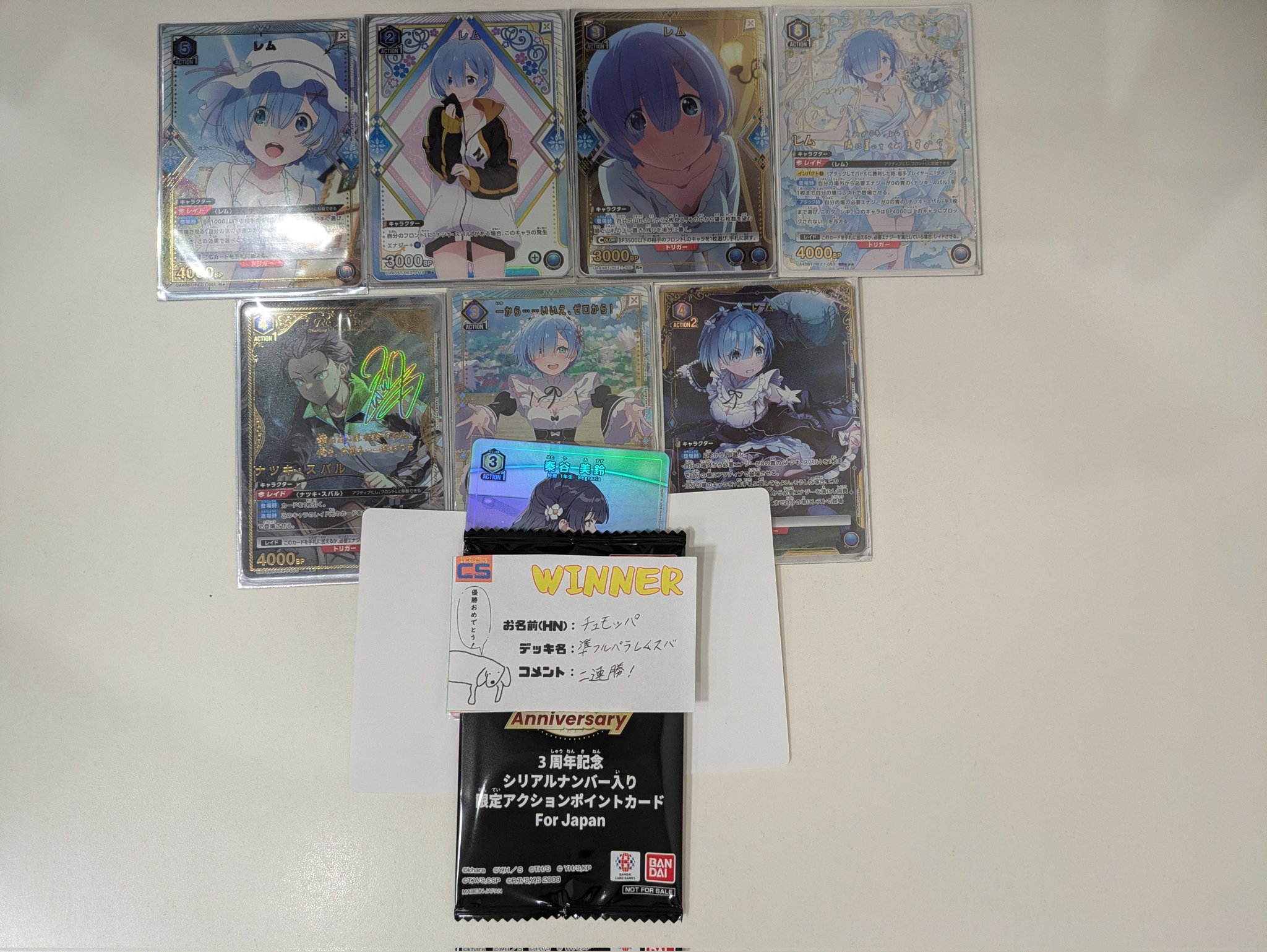【大会結果】 本日開催の3周年ユニチケゲットバトル(参加者16名)の優勝は【チュモッパ】さんです✨🏆✨ 使用デッキ【準フルパラレムスバ】 コメント【2連勝!】 おめでとうございます‼️ #ユニア #ユニオンアリー #UAz