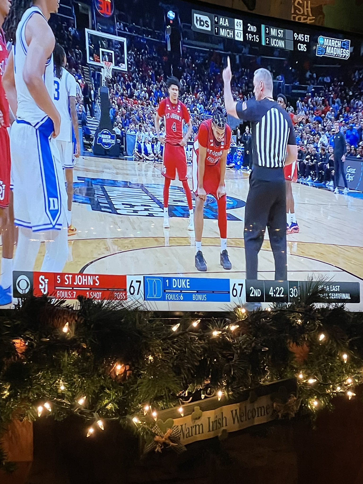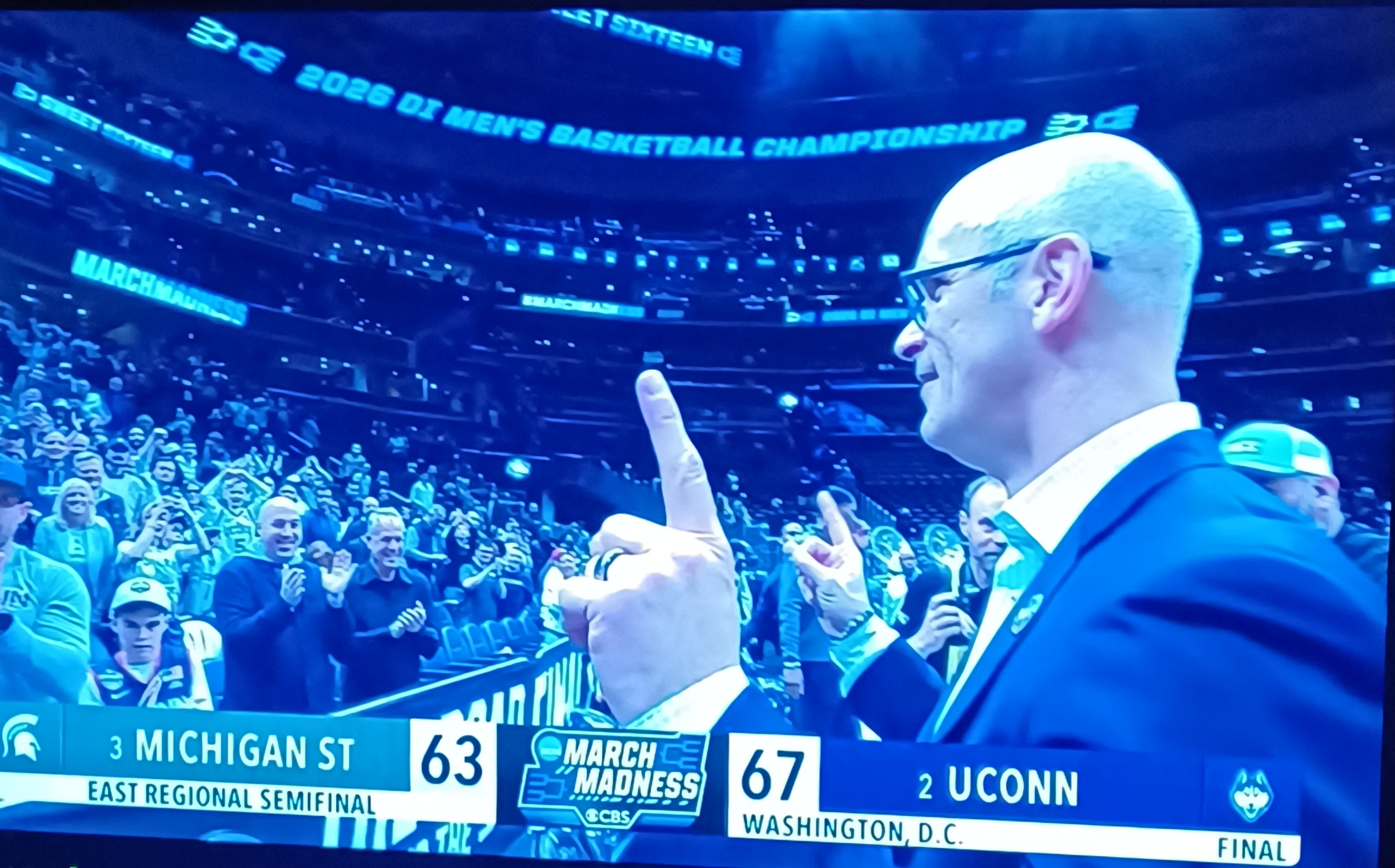Simple explain on THIS #Sweet16 in DC? #MSU was D0WN 19 early to #UConn. They were doing N0THING good. Somehow--- they came roarin` BACK to even take the LEAD only to L0SE it in the end. THERE! That`s the game. Izzo #Spartans road ENDS and Dan Hurley`s #Huskies advance.