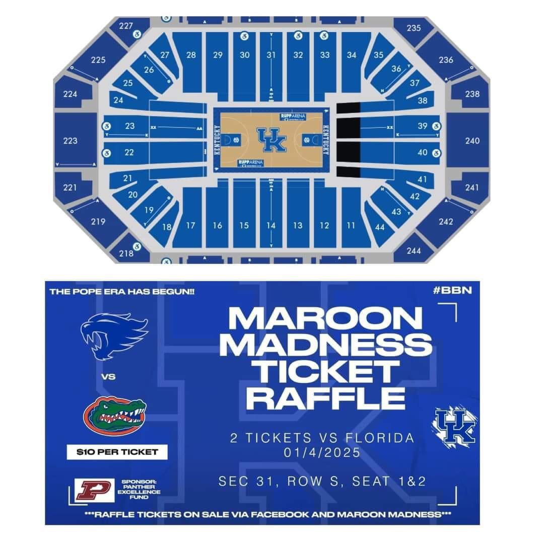 The Pikeville Excellence Fund is raffling off two UK vs. Florida tickets on 1/4/25 in Section 31, Row S, seats 1 & 2. Tickets are $10 each. The live drawing will be held on November 14th! #ukbball #bbn #supporthighschoolbball