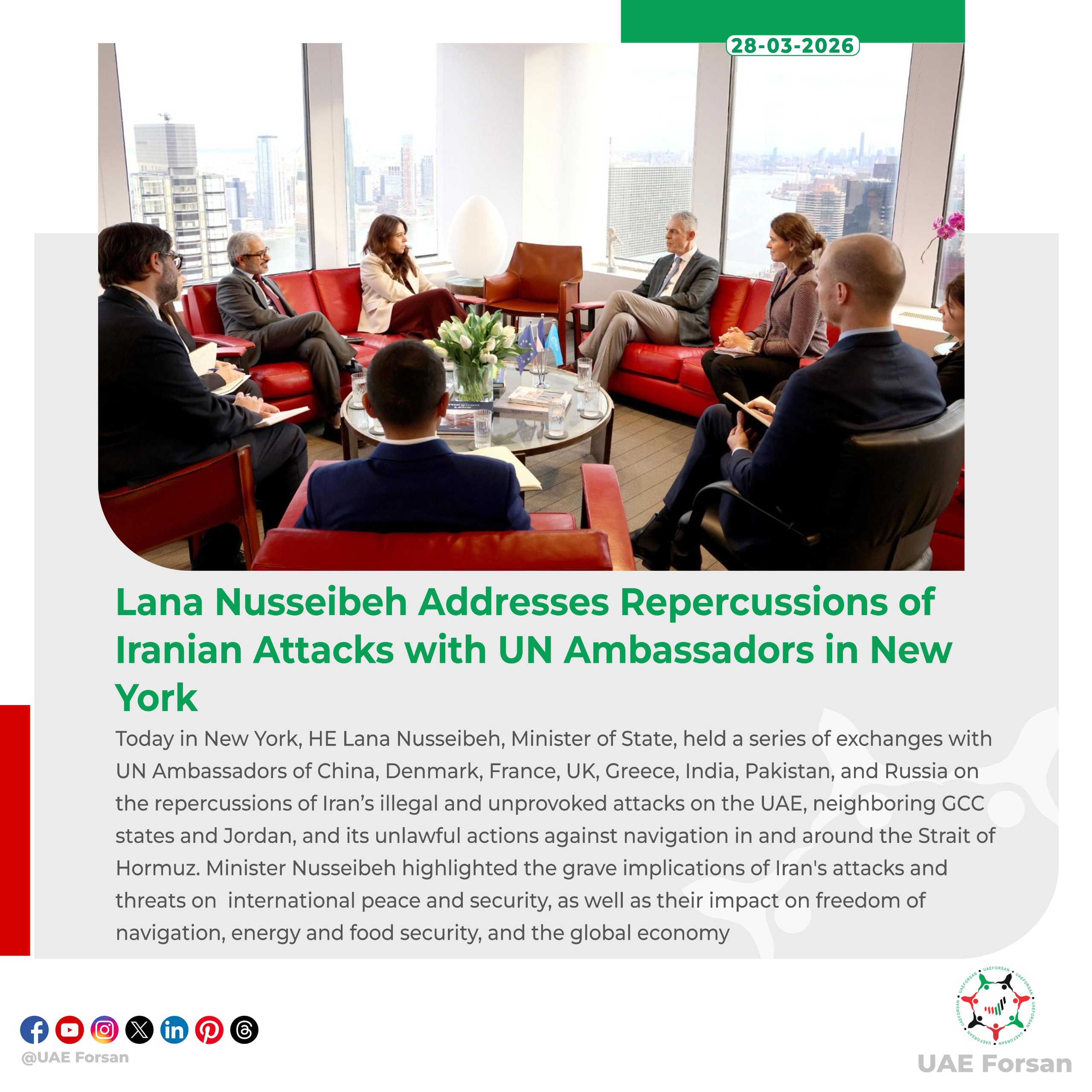 ایران نے اقوام متحدہ کی درخواست پر آبنائے ہرمز سے انسانی امدادی سامان کی نقل و حمل کی سہولت فراہم کرنے پر رضامندی دے دی۔ ایران کے نمائندے رضا نجفی نے کہا ہے