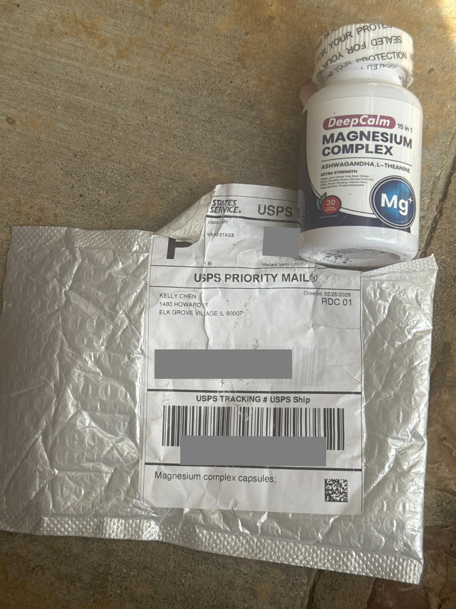 Kelly Chen Unordered Package, Elk Grove Village, IL, USA - I have received 2 bottles of magnesium complex from Kelly Chen that I have not ordered. Any help greatly appreciated. safelyhq.com/incident/kelly…#unorderedpackage
