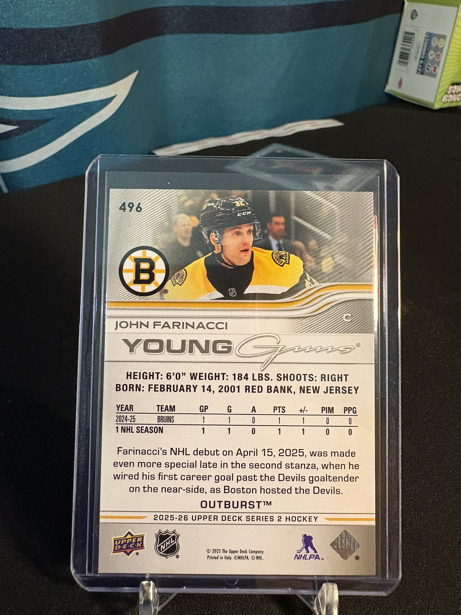 2025-26 Upper Deck Series 2 John Farinacci 496 OUTBURST Young Guns Boston Bruins | eBay