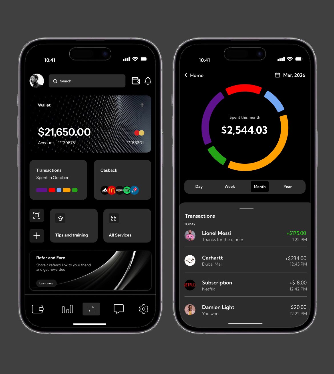 This design prioritizes clarity, speed, and usability from the first screen. Clear financial hierarchy, intuitive navigation, and visual spending insights help users instantly understand where they are and what to do next. #UIUXDesign #ProductDesign #UserExperience #MobileUX