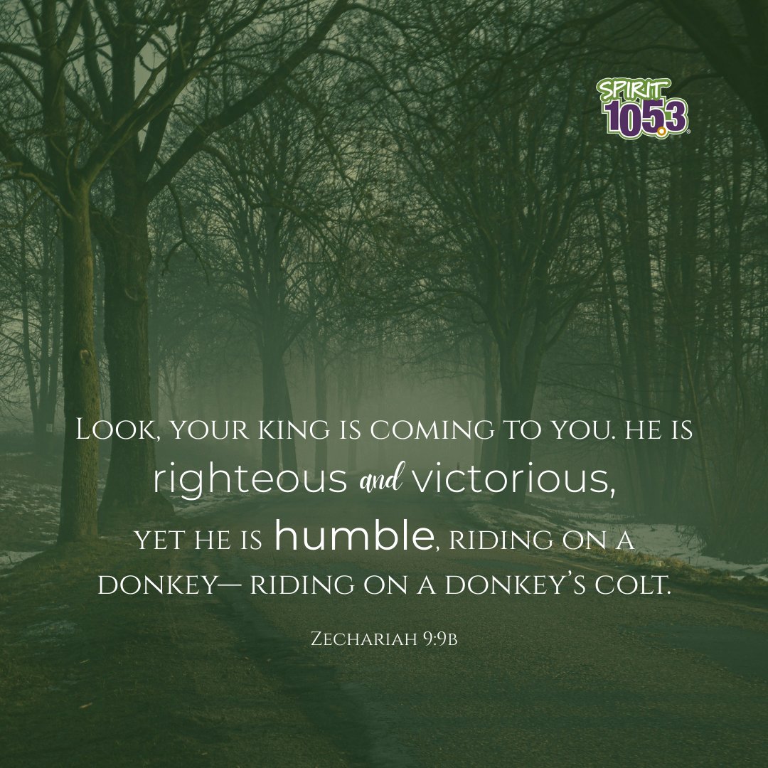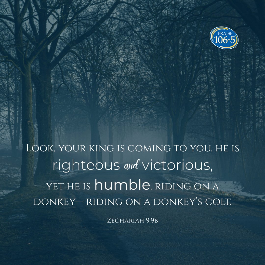 Zechariah 9:9b - Look, your king is coming to you. He is righteous and victorious, yet he is humble, riding on a donkey— riding on a donkey’s colt.