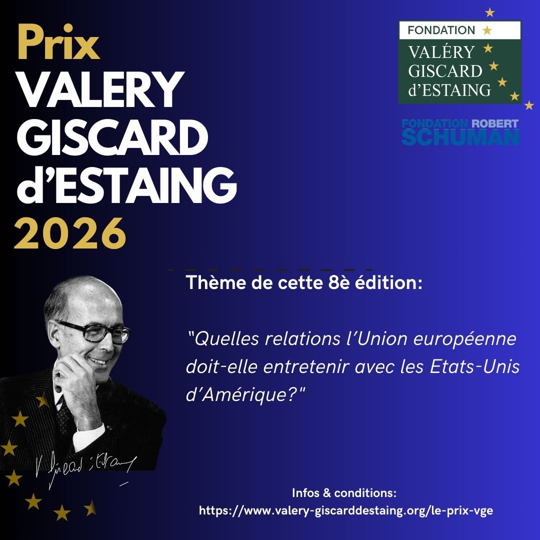 🏆PRIX VGE 🇪��I #Etudiants, vous avez jusqu'au 2 juin pour participer au #Prix #VGE 2026 remis par @la @fondation_VGE en partenariat avec la Fondati@on @robert_schuman et vous voir remettre un diplôme et 1200 euros (lauréat) ou 600 euros (finalistes) lors d'une soirée mémorable au #Sée personnalités #européennes. L'an dernier, c'était le #Ministre délégué chargé de l'#Europe @benjaminhaddad qui nous faisait l'honneur de sa présence. Osez, participez! infos & conditions sur notre site internet ⤵️