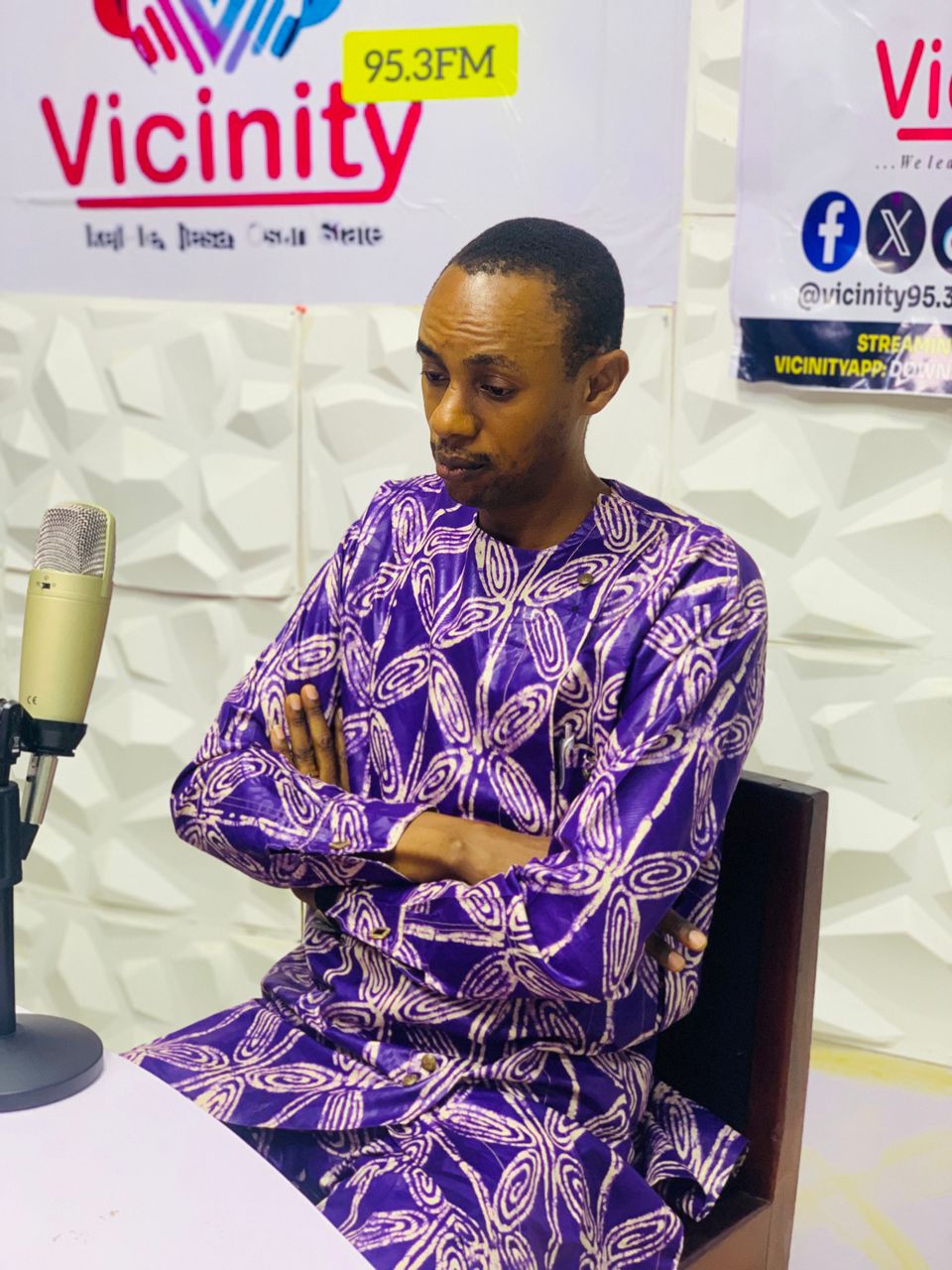 An APC steward in Oriade Local Government, Comrade TOlulope Iyiola Oni in sit with the host of AARO LAWA/MORNING FLIGHT Mujeeb Olakunle and AISHA IBRAHIM, to discuss political issues and political crises that occurred at the CVR center in Ilesa.