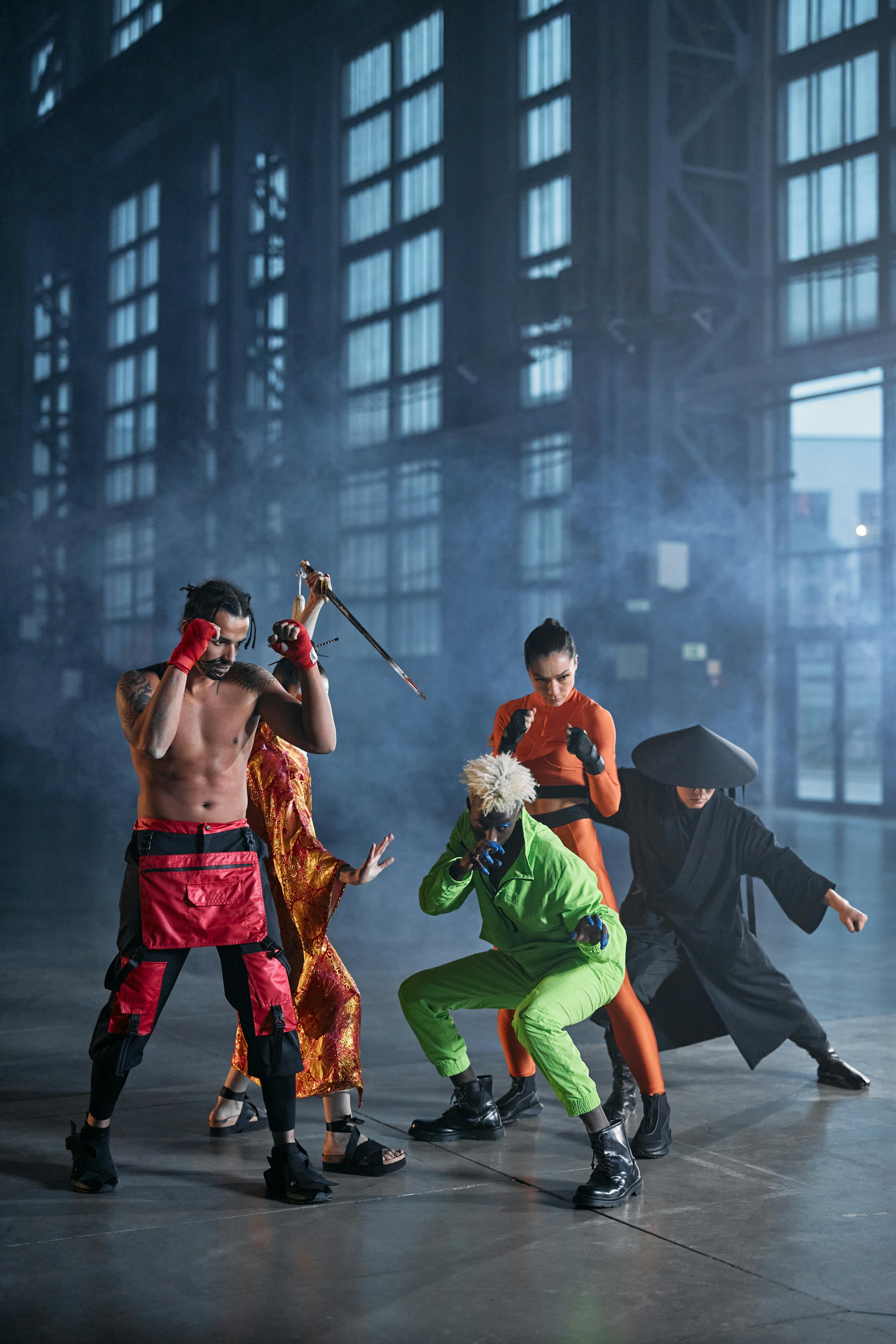 A storm of steel and fists is brewing. In a haze of smoke, diverse fighters clad in red, gold, and shadow prepare for a clash within an abandoned urban arena. Only one faction will walk away from this reckoning.