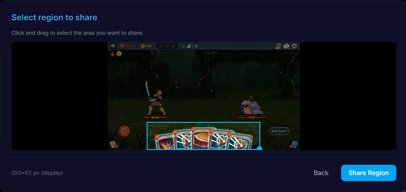 Enjoying Slay The Spire 2 but sad you cant see your friend's hand? We just added sharing a region of your screen, so you can see it nice and large.