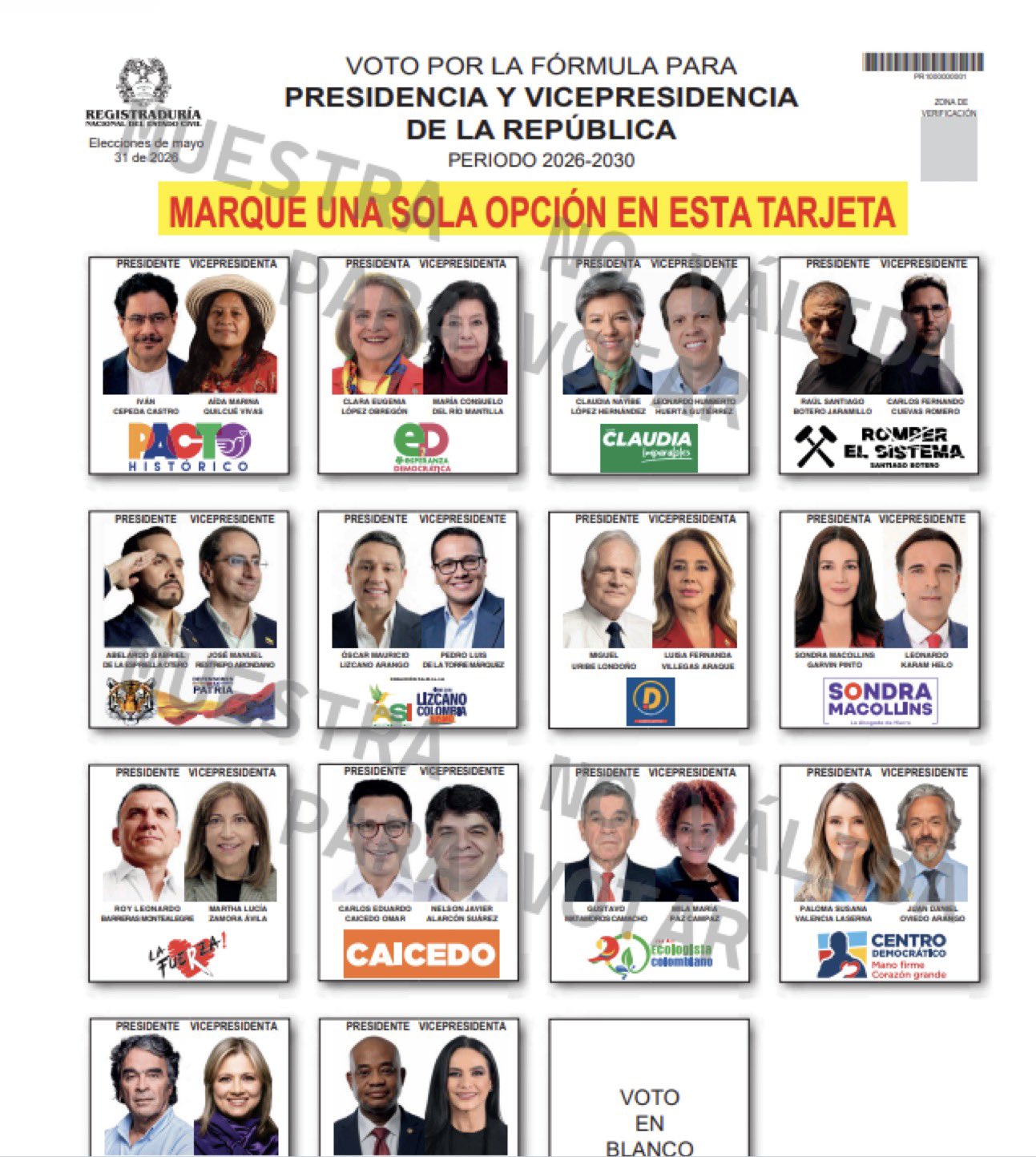 Registraduría revela la tarjeta para la primera vuelta presidencial 2026-2030: múltiples fórmulas en contienda y voto en blanco como opción. Se avecina una elección clave para el país. #Elecciones2026#Registraduría#Voto#Colombia
