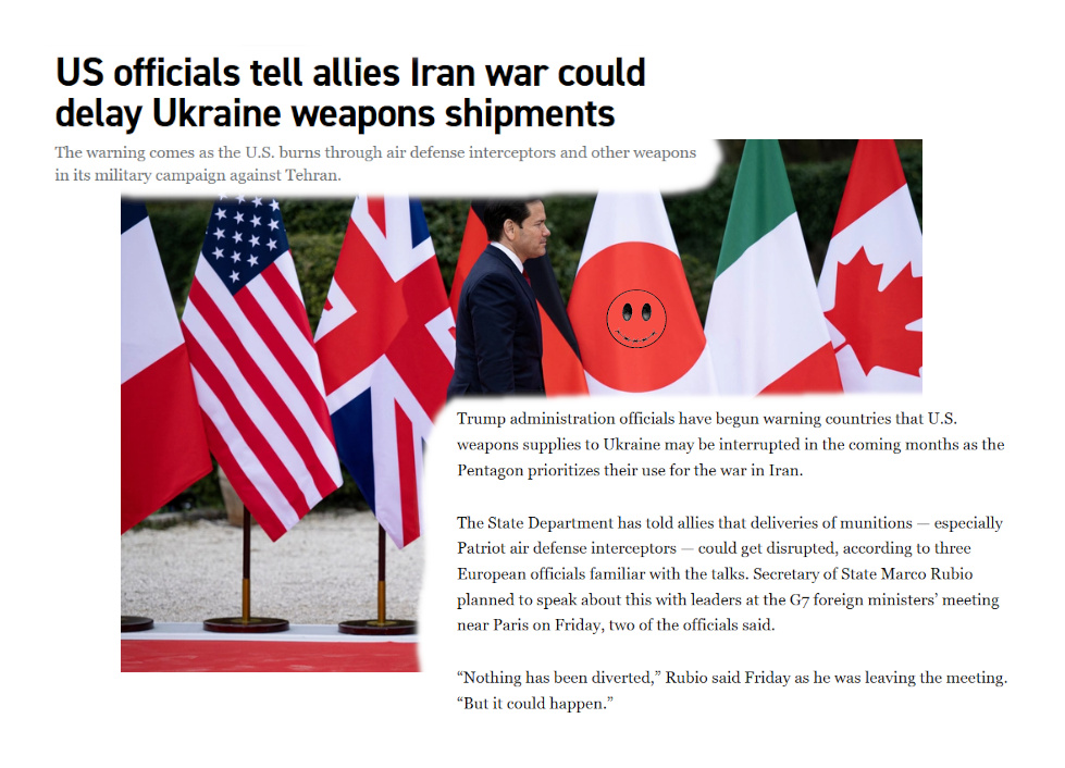 Marco Rubio suggested that the United States might redirect weapons originally intended for Ukraine to the Middle East.