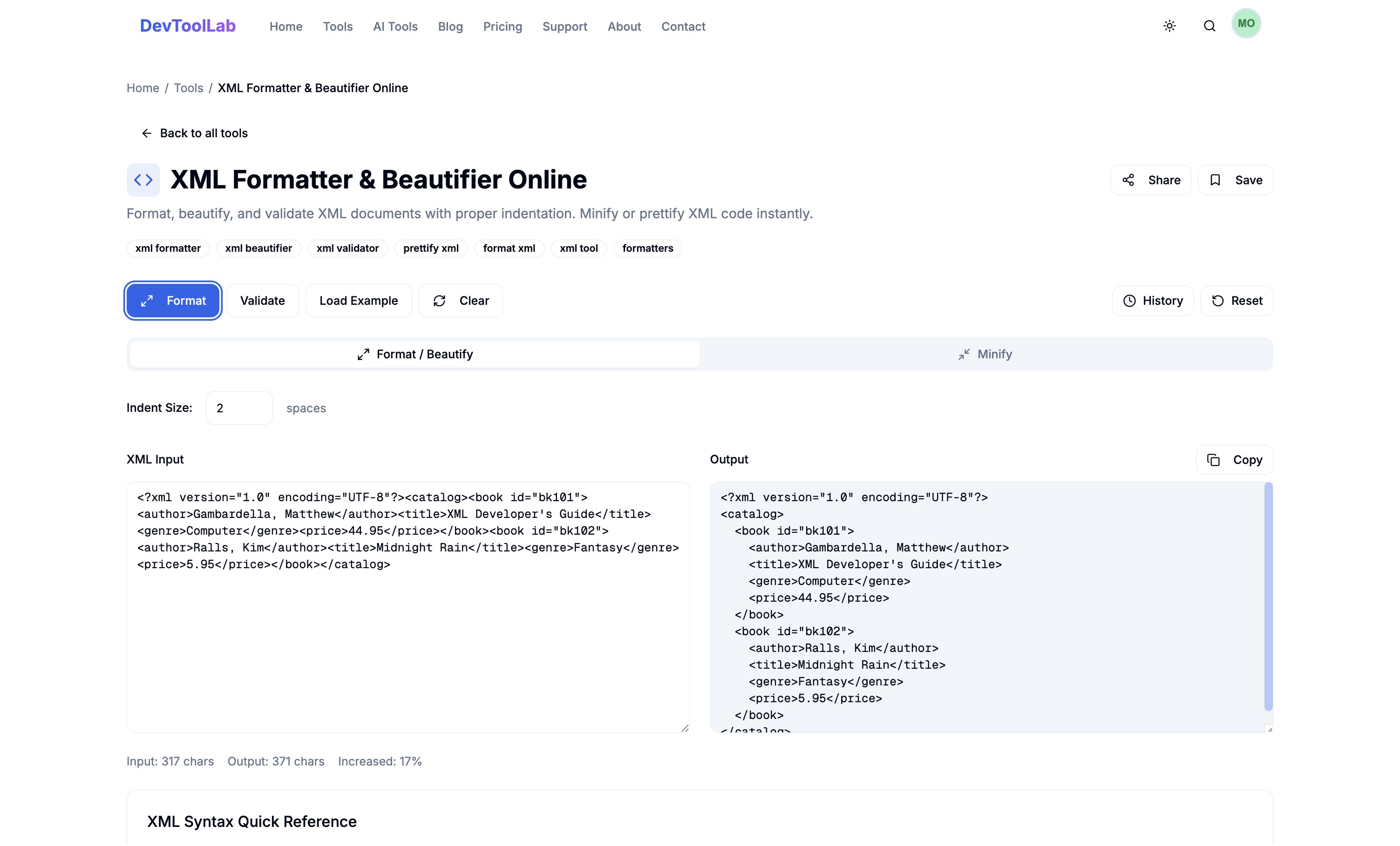 Format XML instantly ⚡