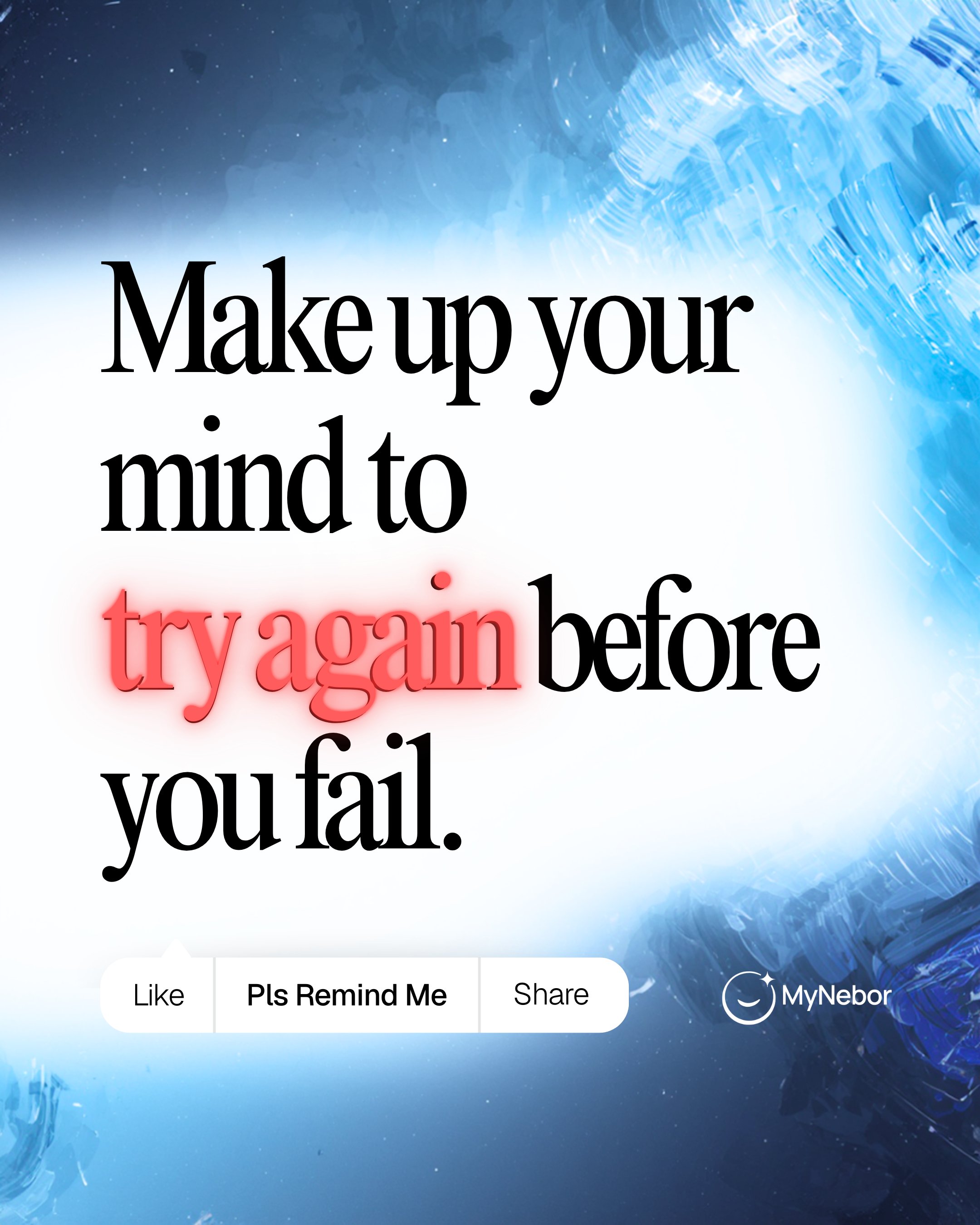 MyNebor @MyNeborHQ · Mar 4 23/100 of Pls Remind Me 💊 You have to make up your mind to try again before you fail. #failtosucceed #PlsRemindMe #yourmindF 1 10