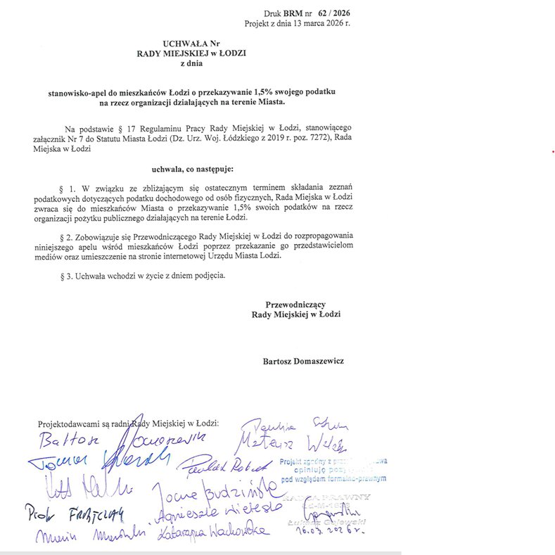 Rada Miejska przyjęła zgłoszoną przeze mnie wraz z innymi radnymi uchwałę-apel do łodzian o przekazywanie 1,5% podatku 💰💰💰 na łódzkie organizacje pożytku publicznego.