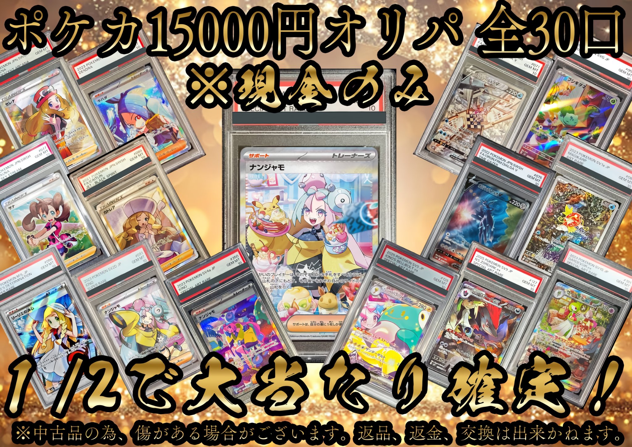 トレーディングカードショップ .ACE@浜松 @dotACE_0809 · Mar 19 『.ACEオリパ販売情報❗』 ポケモンカード 👼天国&奈落😱 白熱の1/2🔥15000円オリパ全30口 大当たり 👑ナンジャモ SAR👑 👑サーナイトex SAR👑 👑コイキング AR👑 👑カトレア SR👑 👑リーリエの決心 SR👑 など 🔥ニブイチで爆アドを掴みとれ🔥 皆様の挑戦お待ちしております�� #ポケカ /t.co/QaL3ThB4Sh 402