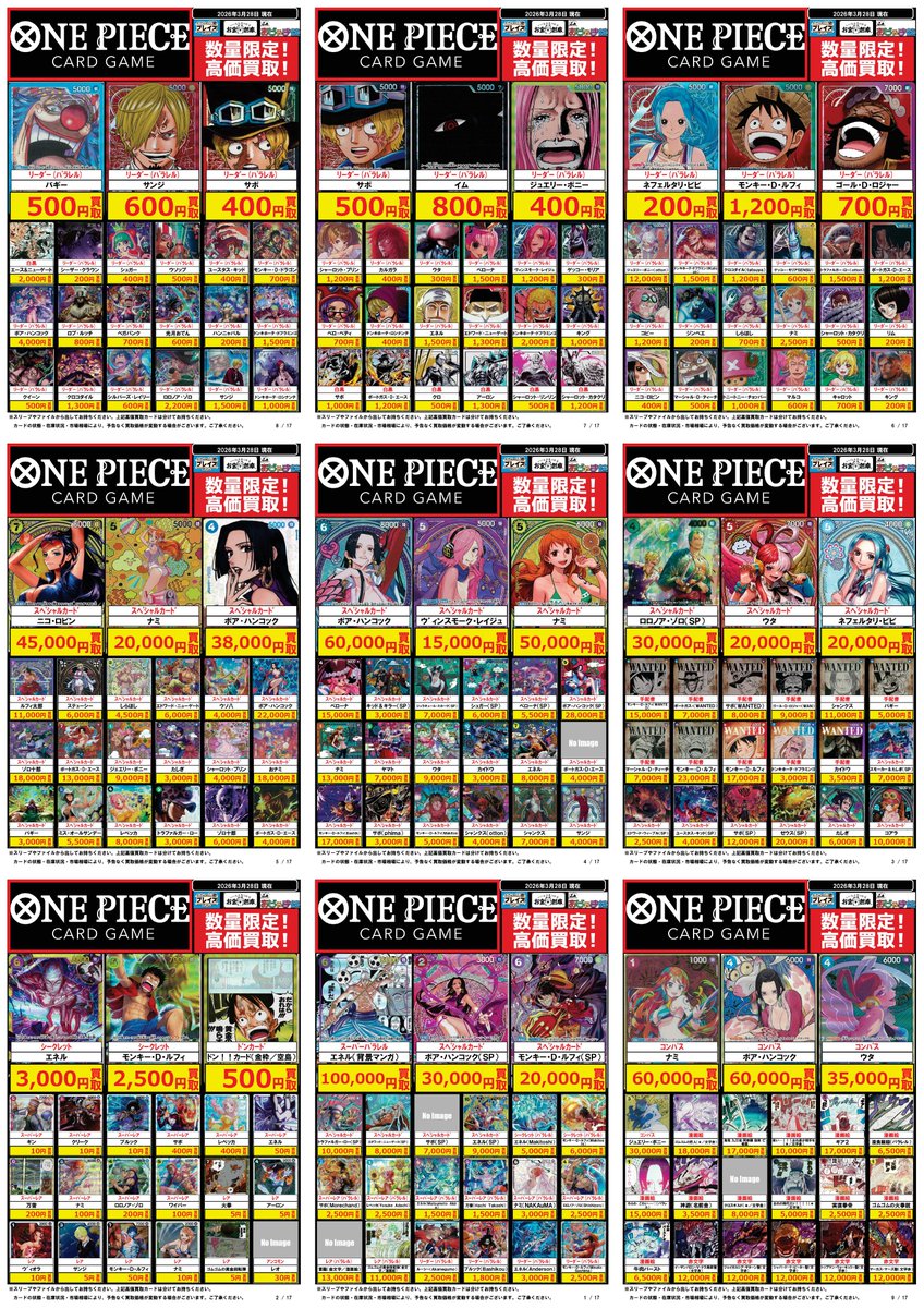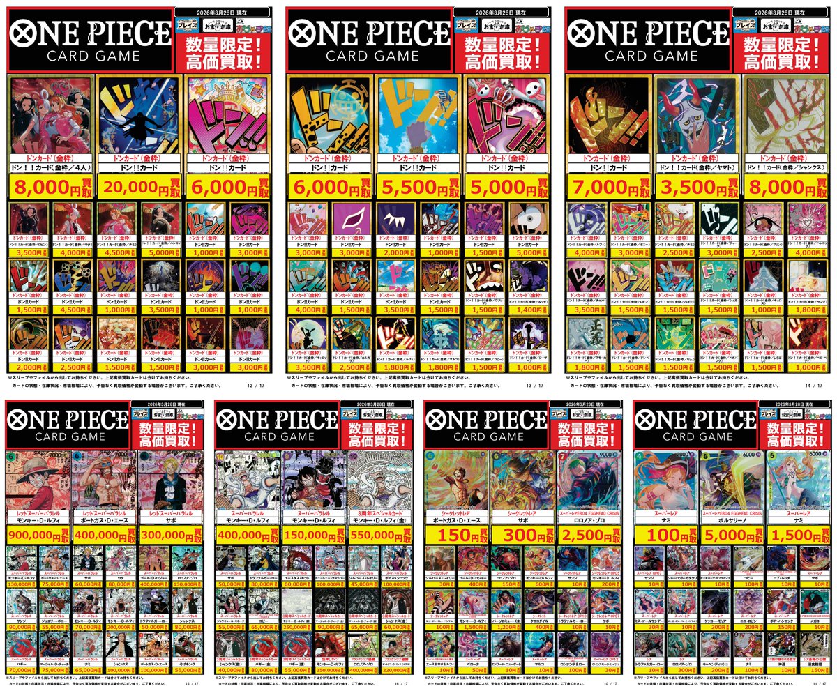 おじゃま館 小路店✨トレカ&ゲーム&レトロ専門店✨ @ojamakan_s · 6m 🟦お宝創庫グループ🟦 🌟🌟🌟��🌟🌟🌟🌟 #ワンピースカードゲーム 買取強化中 03/28更新 🌟🌟🌟🌟🌟🌟🌟🌟 買取持ち込みお待ちしております。 ☘️状態や在庫状況://t.co/nL18fhv7oq 55