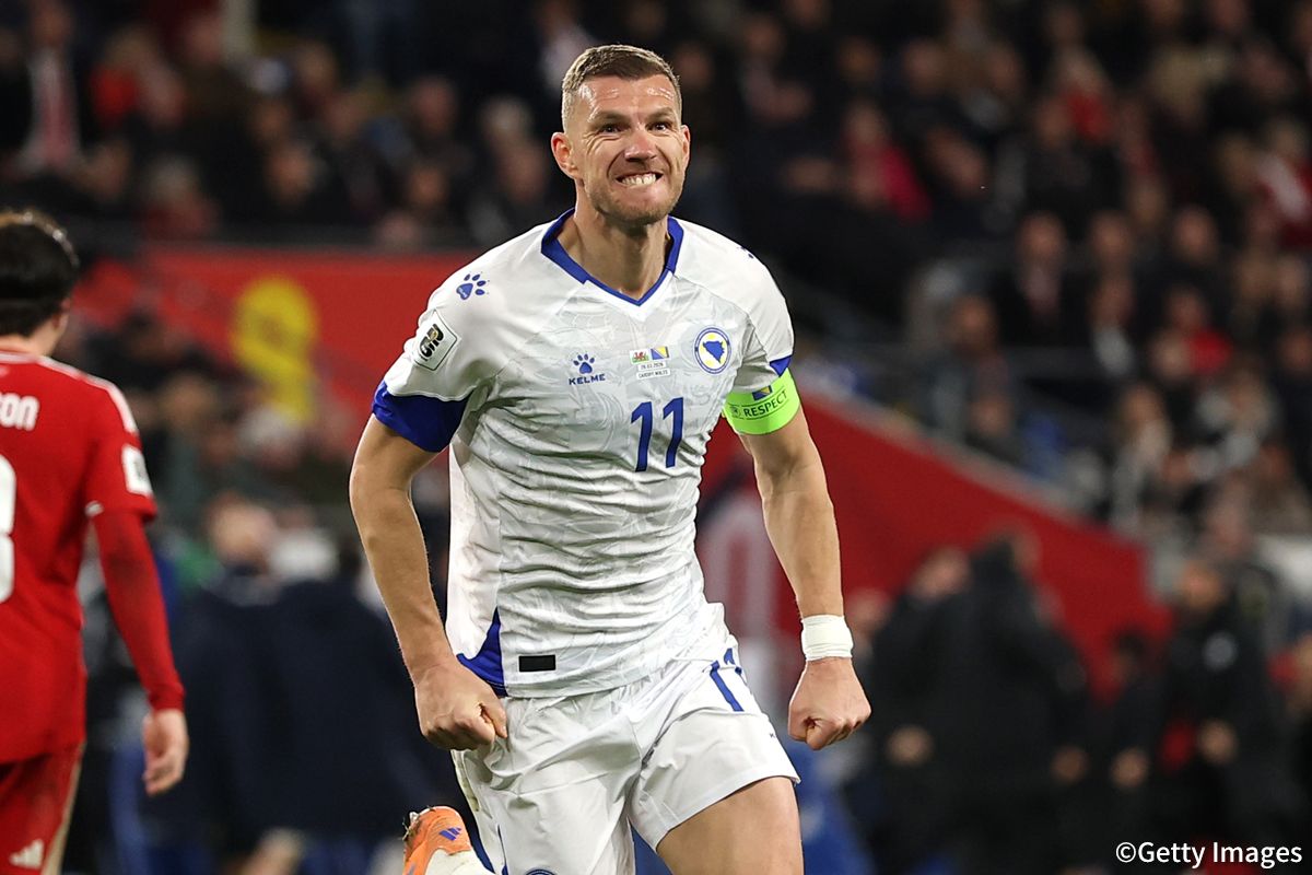 打倒・イタリア! 終盤に値千金ヘッド、自身2度目のW杯を目指す40歳FWジェコが誓う「間違いなく彼らが格上。再び全力を尽くす」 (サッカーキング)