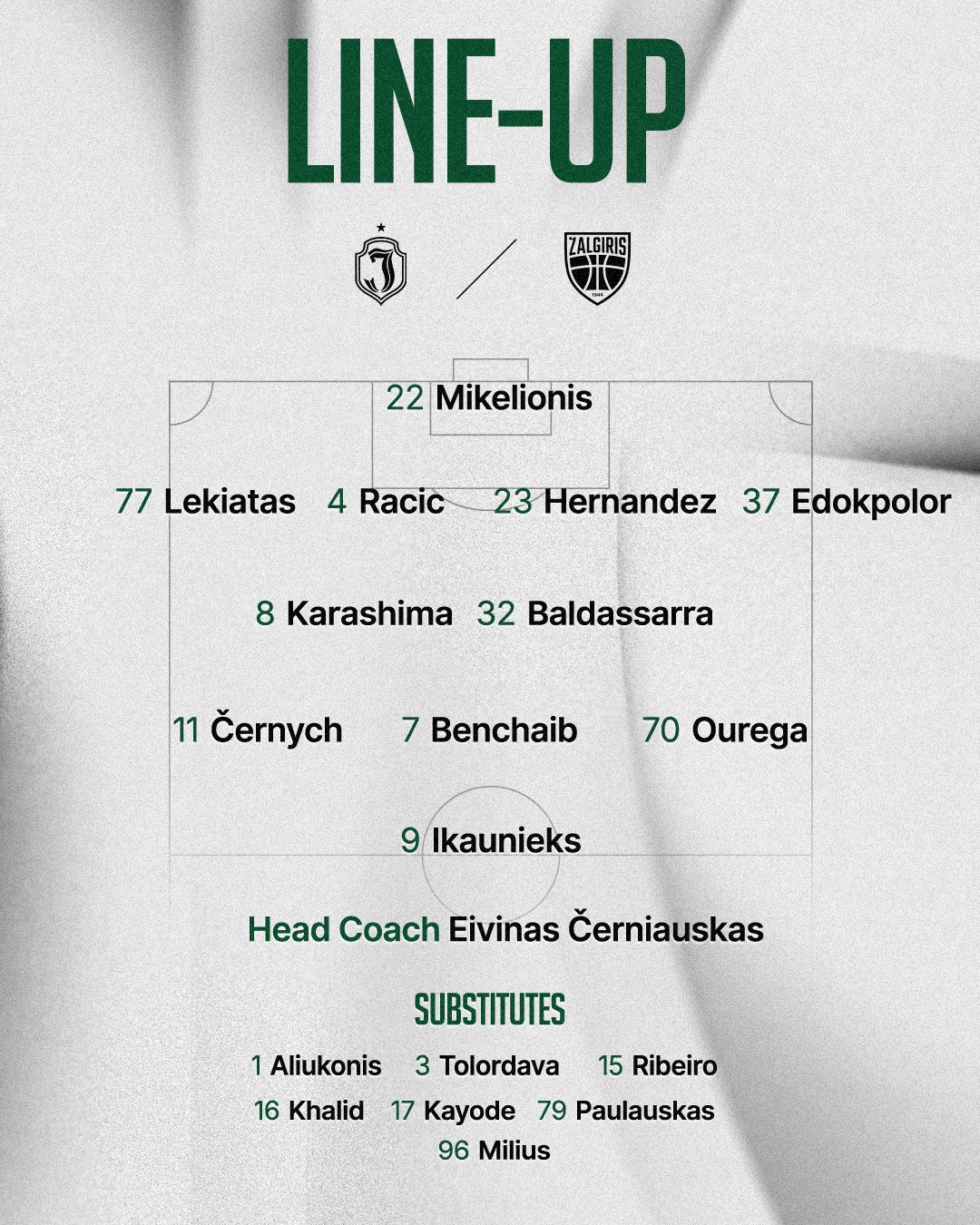 Luka Racic and Franco Baldassarra will play from the minutes for the first time while our B team players will also be waiting for their chance from the bench: newcomer from Nigeria Al-Amin Khalid and Titas Milius.