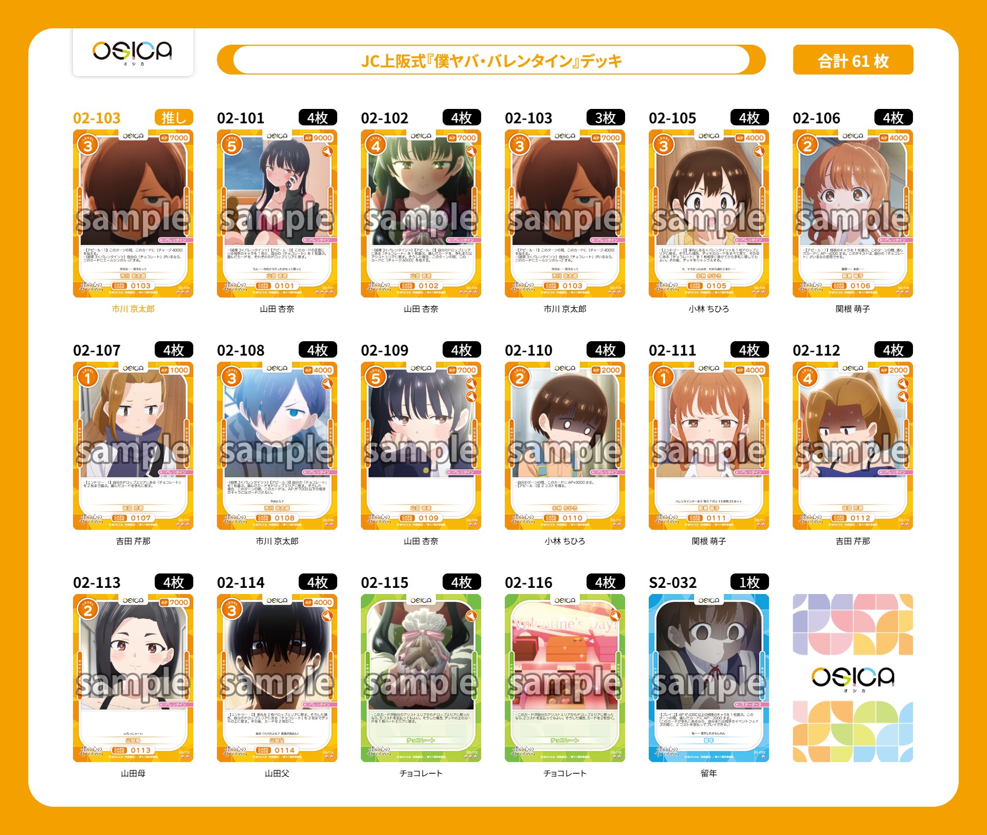 OSICA 僕の心のヤバイやつ SR以下4コン 各4枚 (2)をメルカリでお得に通販、誰でも安心して簡単に売り買いが楽しめるフリマサービスです。新品/未使用品も多数、支払いはクレジットカード・キャリア決済・コンビニ・銀行ATMが利用可能で、品物が届いてから出品者に入金される独自システムのため安心です。