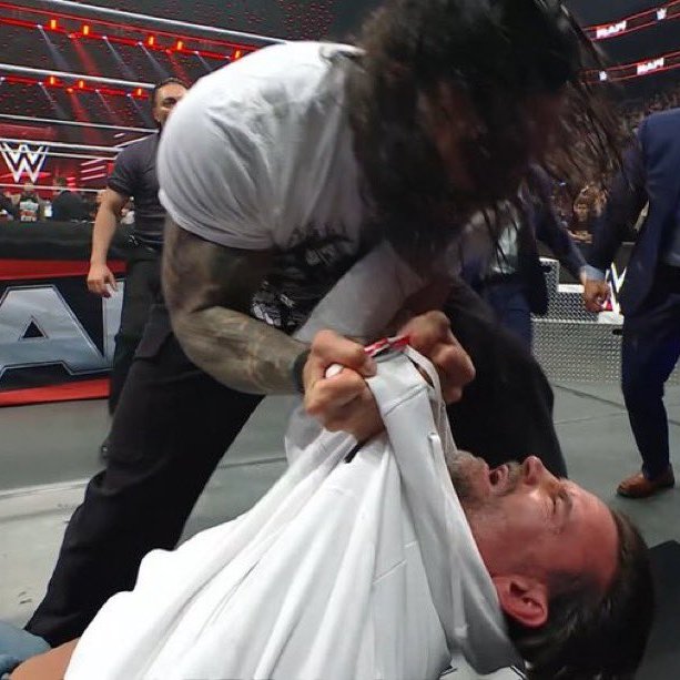 Puke really thought Roman was going to have his cuzzos help him like he did in the past. All that did was piss off the Tribal Chief & Phil got Superman Punched, Speared, slammed into the ringpost & Powerbombed thru a table...just by Roman. ☝️🏽P