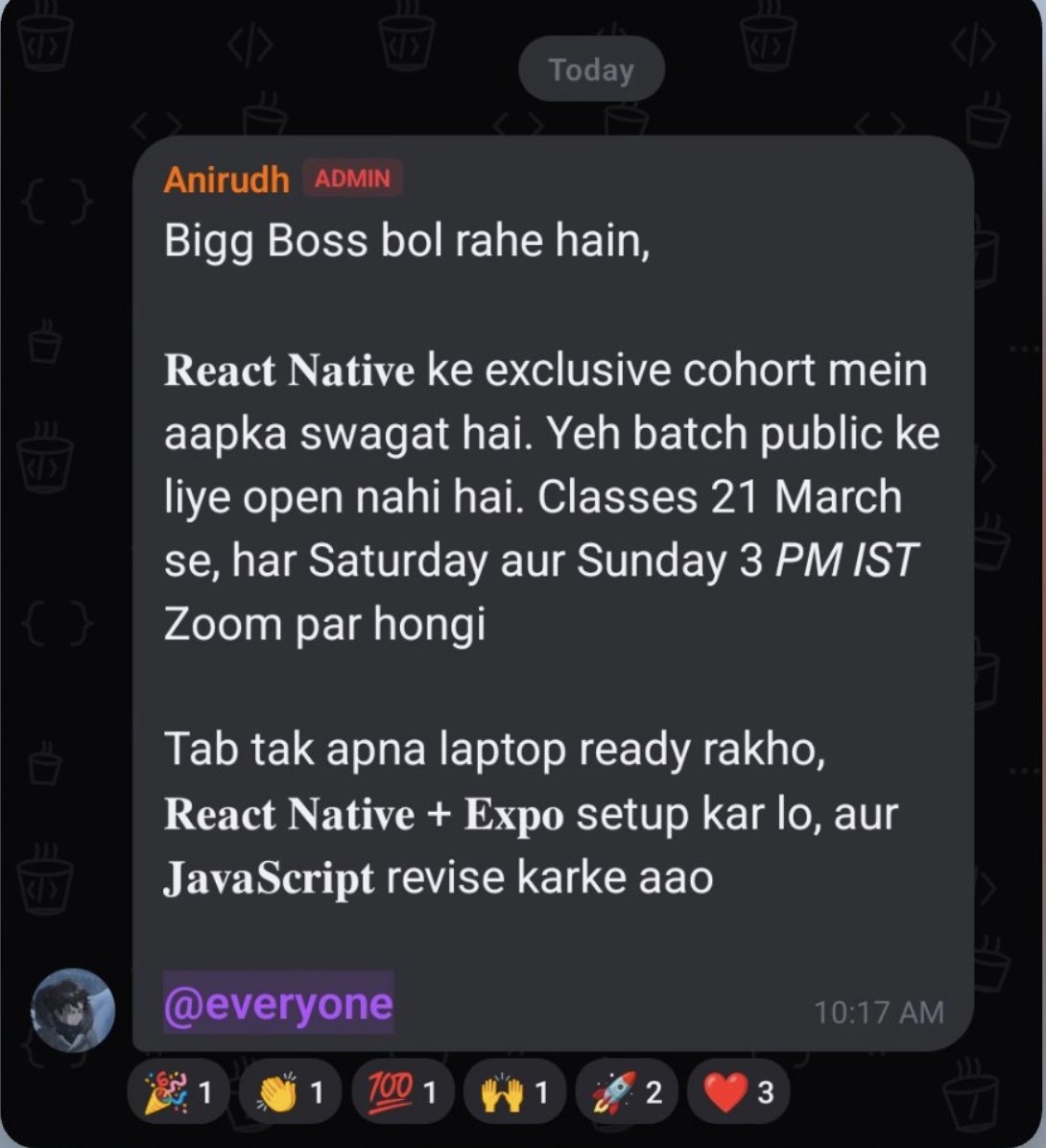 Got into the exclusive React Native Mobile Development Cohort at@ChaiCodeHQ.