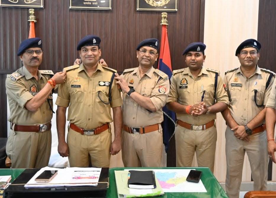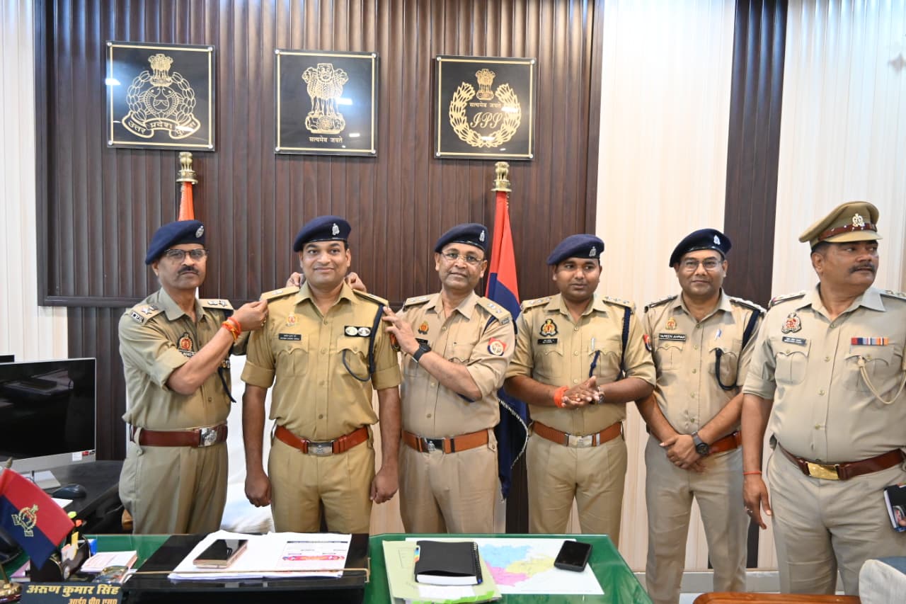 #SP_Ckt श्री अरुण कुमार सिंह एवं #Add_spckt सत्यपाल सिंह द्वारा #CO नगर अरविन्द कुमार वर्मा को #ASP के पद पर पदोन्नत होने पर रैंक प्रतीक/अशोक स्तंभ लगाकर पदोन्नति की बधाई देते हुए उनके उज्जवल भविष्य की कामना की गई। @aajtak @ADGZonPrayagraj @chitrakootpol