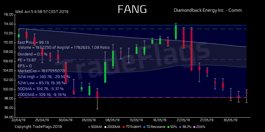 TradeFlags @TradeFlags · Jun 5, 2019 TD BUY $FANG at 99.32, Supp 98.25 Resis 113.80 R16 HiLo 25% T1Y 154 buy 1.6 PE 17.4 DIV 0.47% #Diamondbac #stocks #trading #finance #market bit.ly/2WoDK8X