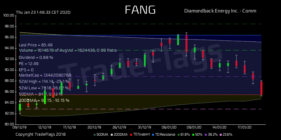 TradeFlags @TradeFlags · Jan 23, 2020 TD BUY $FANG at 85.49, Supp 85.49 Resis 96.42 R13 HiLo 30% T1Y 126 buy 1.8 PE 12.7 DIV 0.85% #Diamondbac #stocks #trading #finance #market bit.ly/36manUW