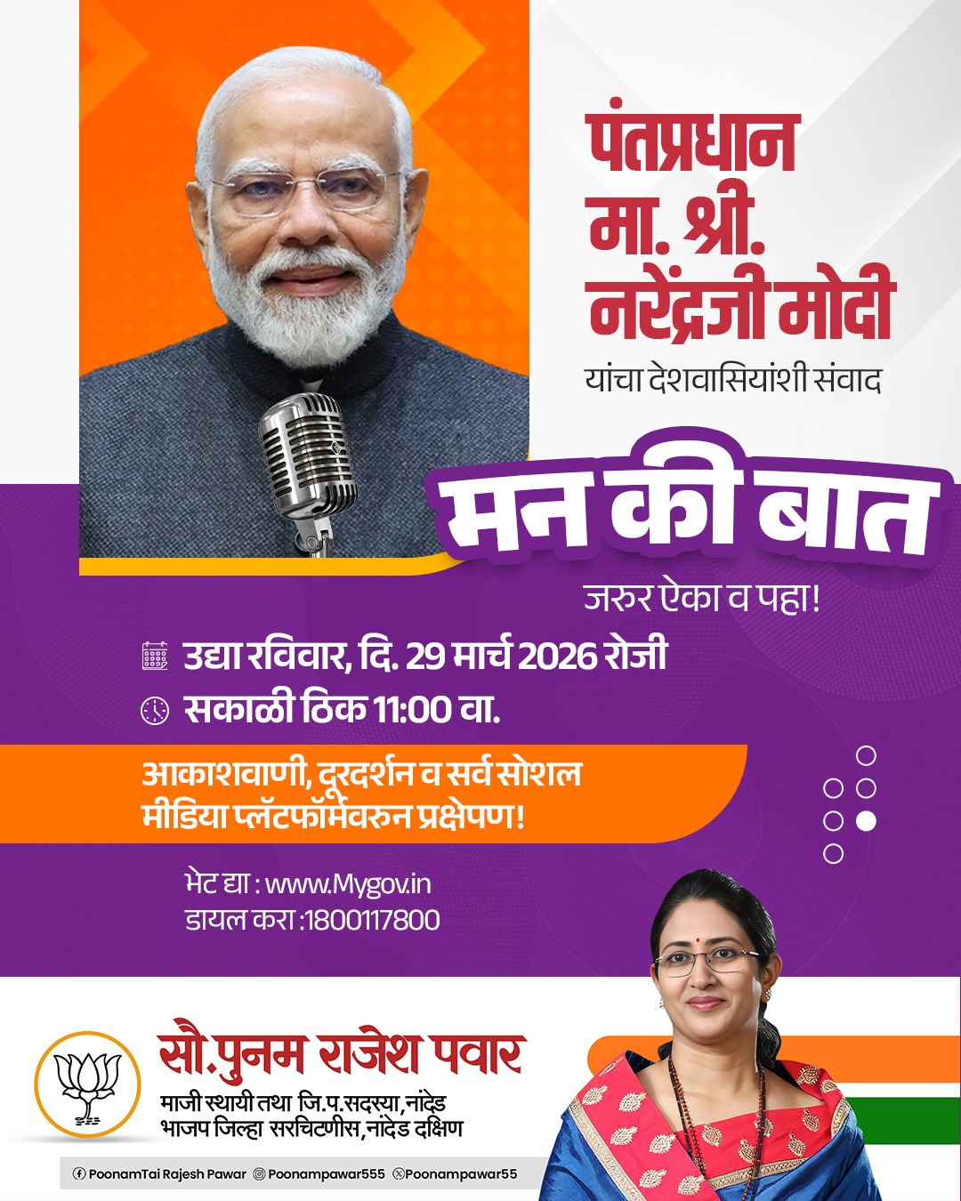 माननीय प्रधानमंत्री श्री @narendramodi जी 'मन की बात' कार्यक्रम के माध्यम से अपने विचार साझा करेंगे।