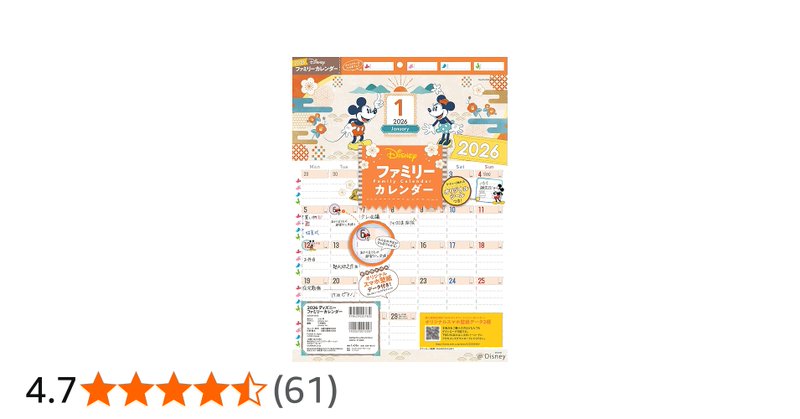 From amazon.co.jpミッキー&ミニーと一緒に楽しく過ごそう☆ 毎日の予定を書き込んで、ひと目でわかる。一覧で管理できるディズニーカレンダー! 子供の学校行事や習いごと、家族みんなのスケジュールはもちろん、 カップルのそれぞれの予定や、お一人にもオススメ! 忙しい毎日を大好きなミッキー&フレンズと一緒に楽しくハッピーに★ かわいいオリジナルシール付き! 〈特長〉 ・壁掛け ・六曜、二十四節気掲載 ・キャラクター...