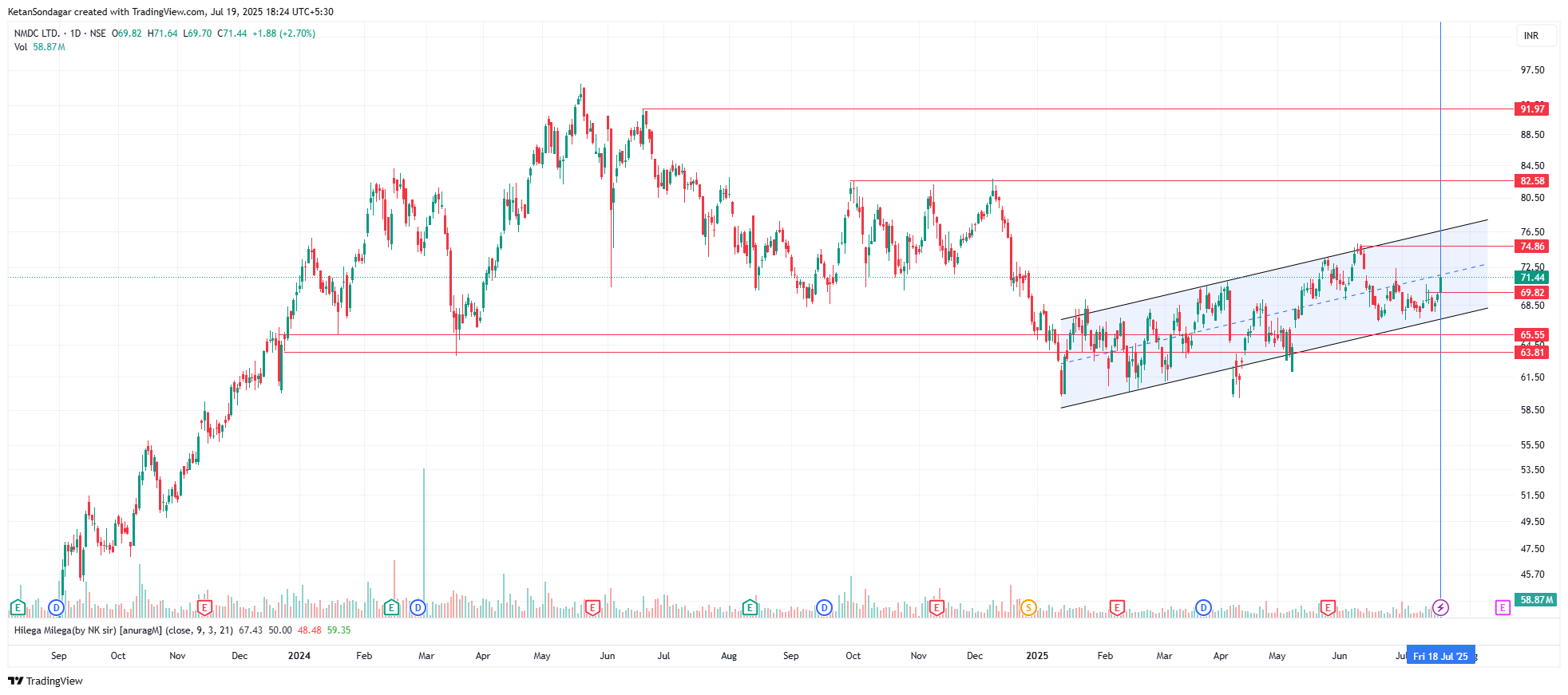 📈 **NMDC LTD Alert!** 🚀 Price is cruising in a tight parallel channel, grabbing strong support with surging volume! 📊