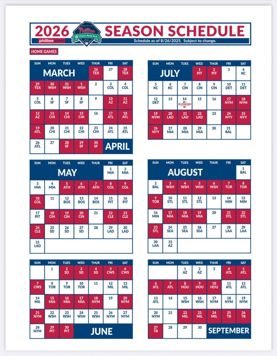 2026 PHILLIES SCHEDULE 🔔🔔🔔