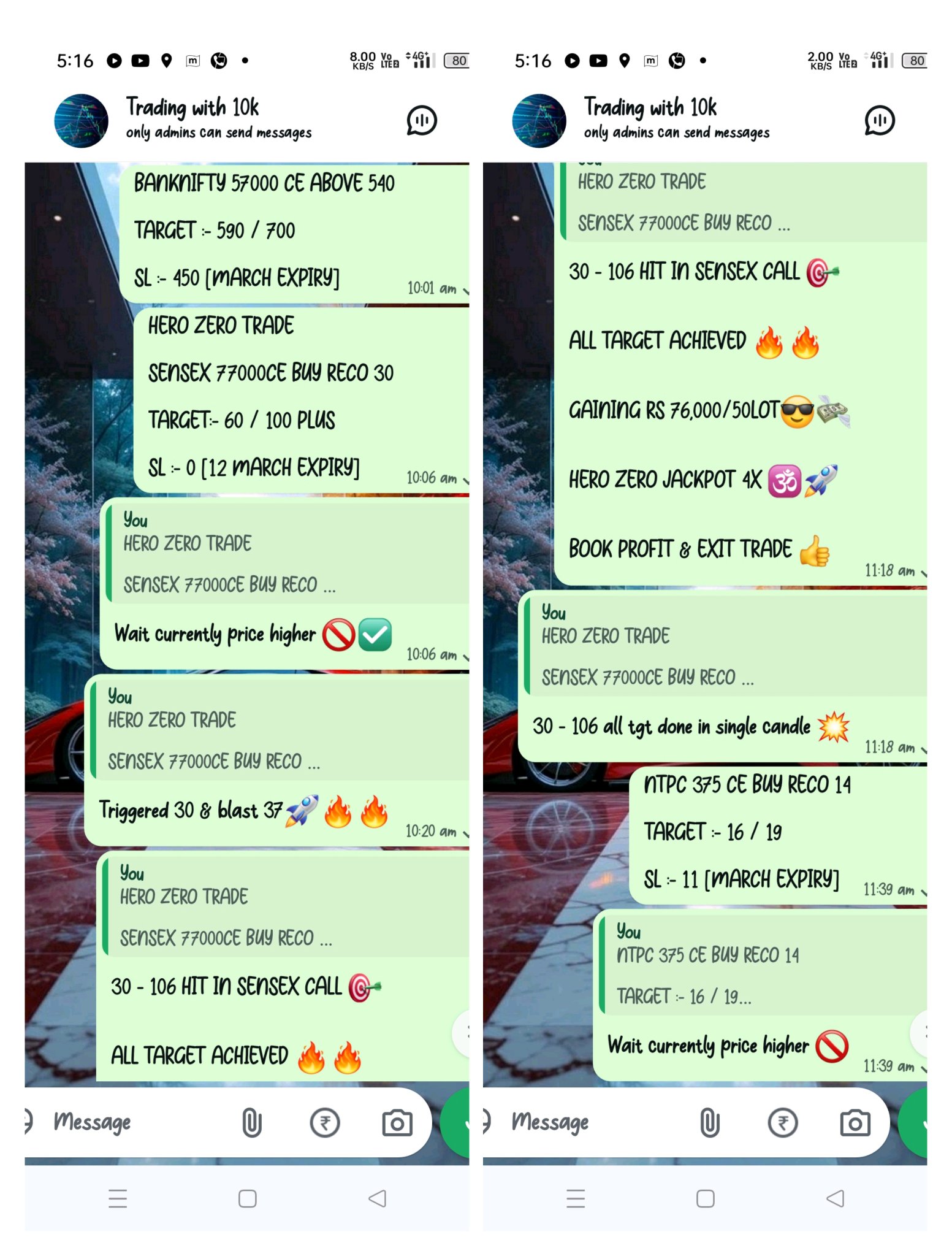 #SENSEX 77000CE 30 - 106 HIT ALL TGT HERO ZERO 4X�
