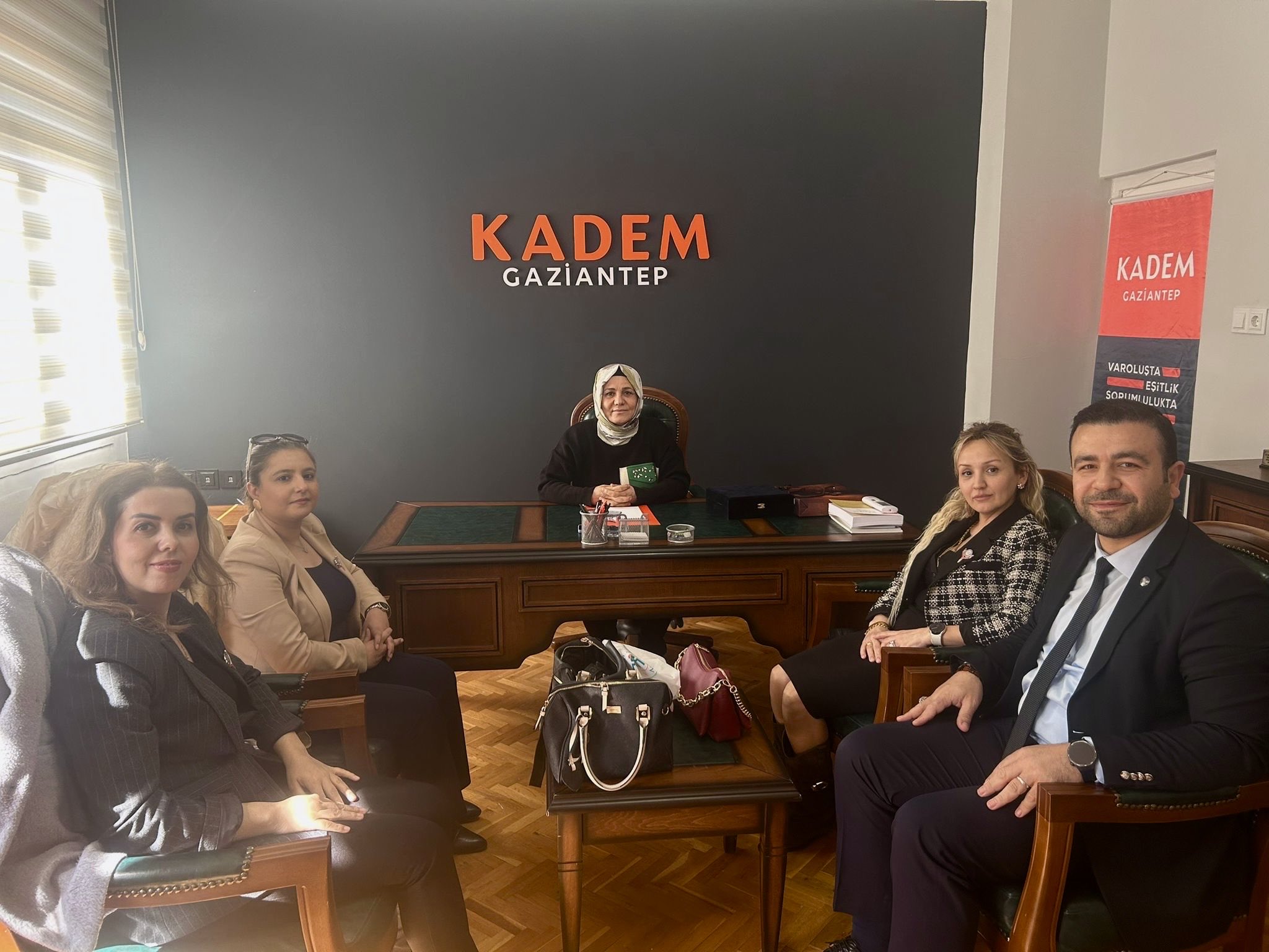 Şubemiz Kadınlar Komisyonu Başkanı Alev Deniz ÇEÇEN, Şube Başkanımız Harun ŞENCAY, Şubemiz Kadınlar Komisyonu Başkan Yardımcıları Özlem Tuğba AĞCABAY ve Zeynep AĞBAĞ birlikte KADEM (Kadın ve Demokrasi Derneği) Gaziantep İl Başkanı Sayın Lütfiye TAŞ’a nezaket ziyaretinde