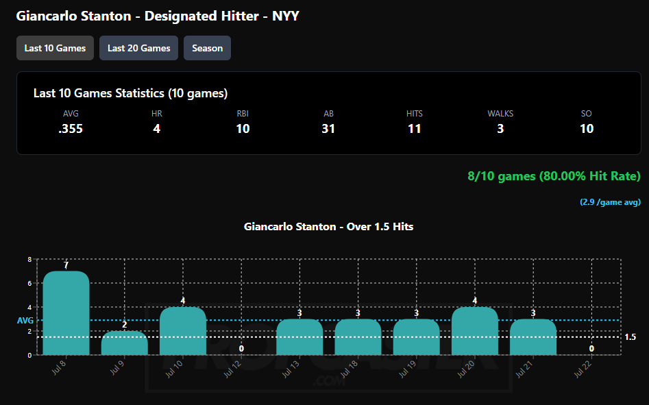 - He’s favored O -140 / U +100 on books and has 14 hits in his L14 games this season. He’s also hitting better vs LHP, with a higher BA + BABIP