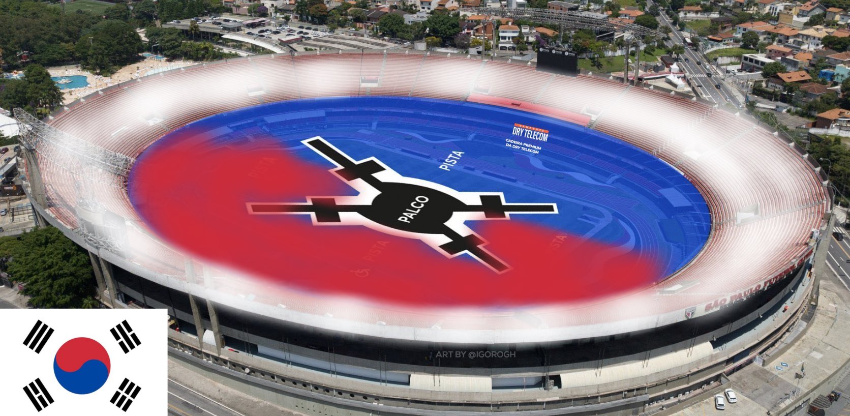 Se fôssemos fazer esse tipo de projeto a gente teria que dividir o estádio em 3. Os arquibancadas ficariam com a parte branca enquanto restante do estádio precisaria dividir do azul ao vermelho