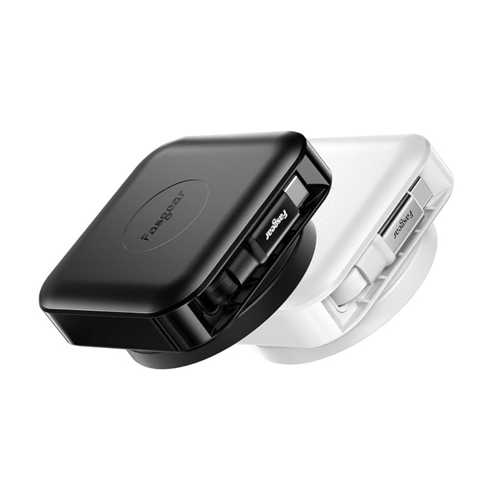 Fasgear Retractable USB C Cable,60W PD/PPS Fast Charging Retractable USB C to USB C 2.0 Charger Cord for i-Phone 17 16 Pro/i-Pad Pro/Mac-Book,etc, 360°Rotatable Desk Type C Cable(2m,Black&Pure White)